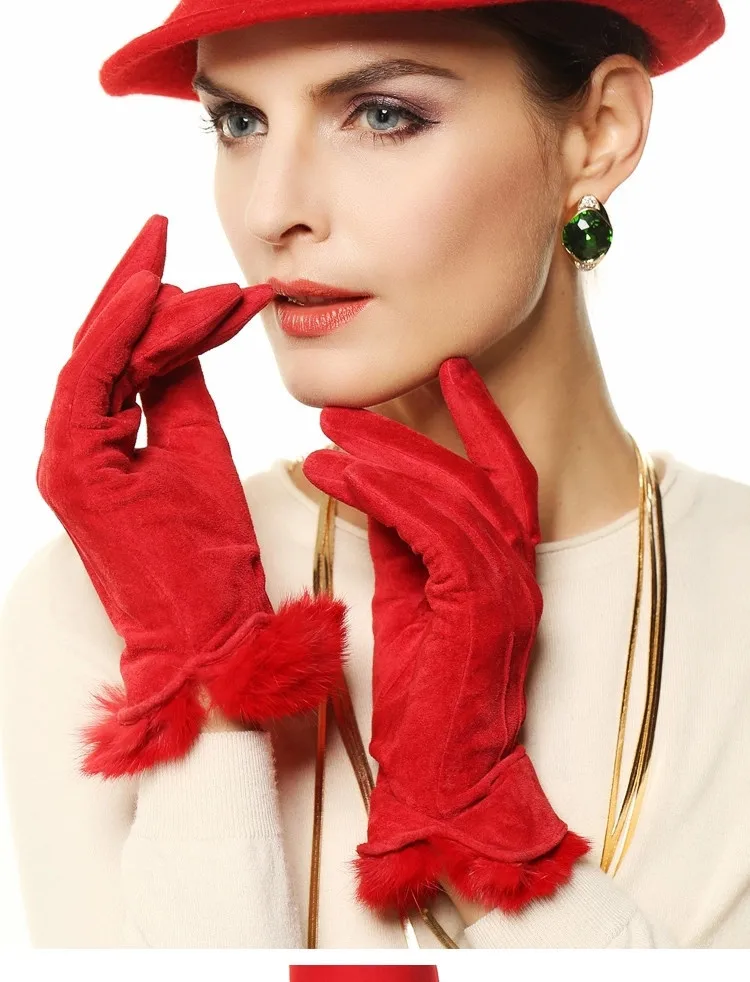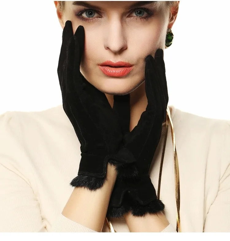 Специальное предложение, женские перчатки на запястье из заячьей шерсти свиная кожа замша перчатки Модные короткие ботинки из натуральной кожи, женские сапоги для вождения, L130NN