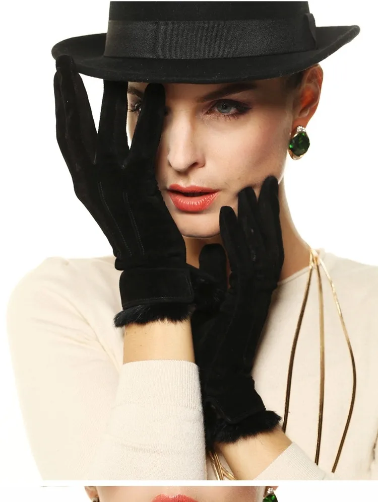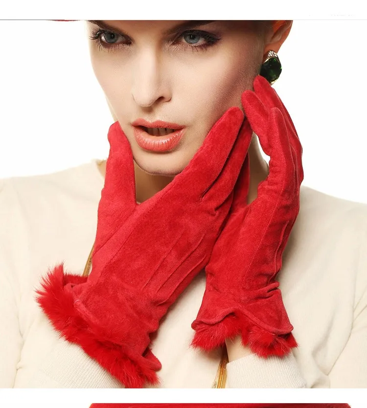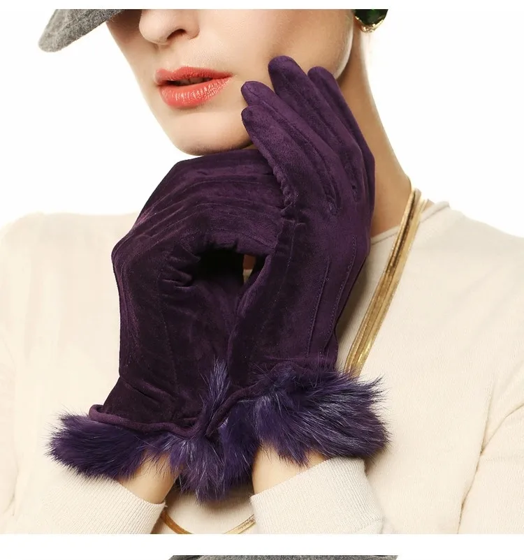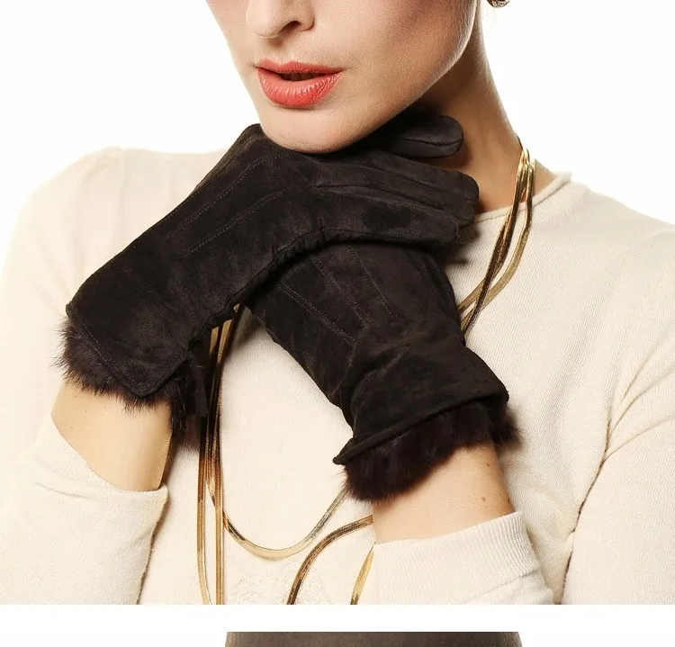 Специальное предложение 2020 женские перчатки на запястье из цельного кроличьего меха, свиная кожа, замшевые перчатки, модные короткие женские перчатки из натуральной кожи для вождения, распродажа