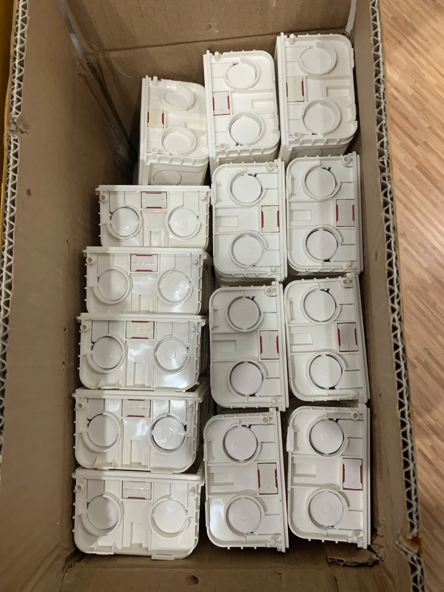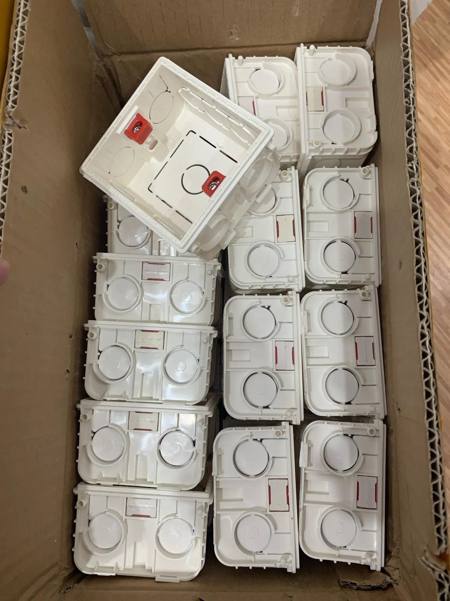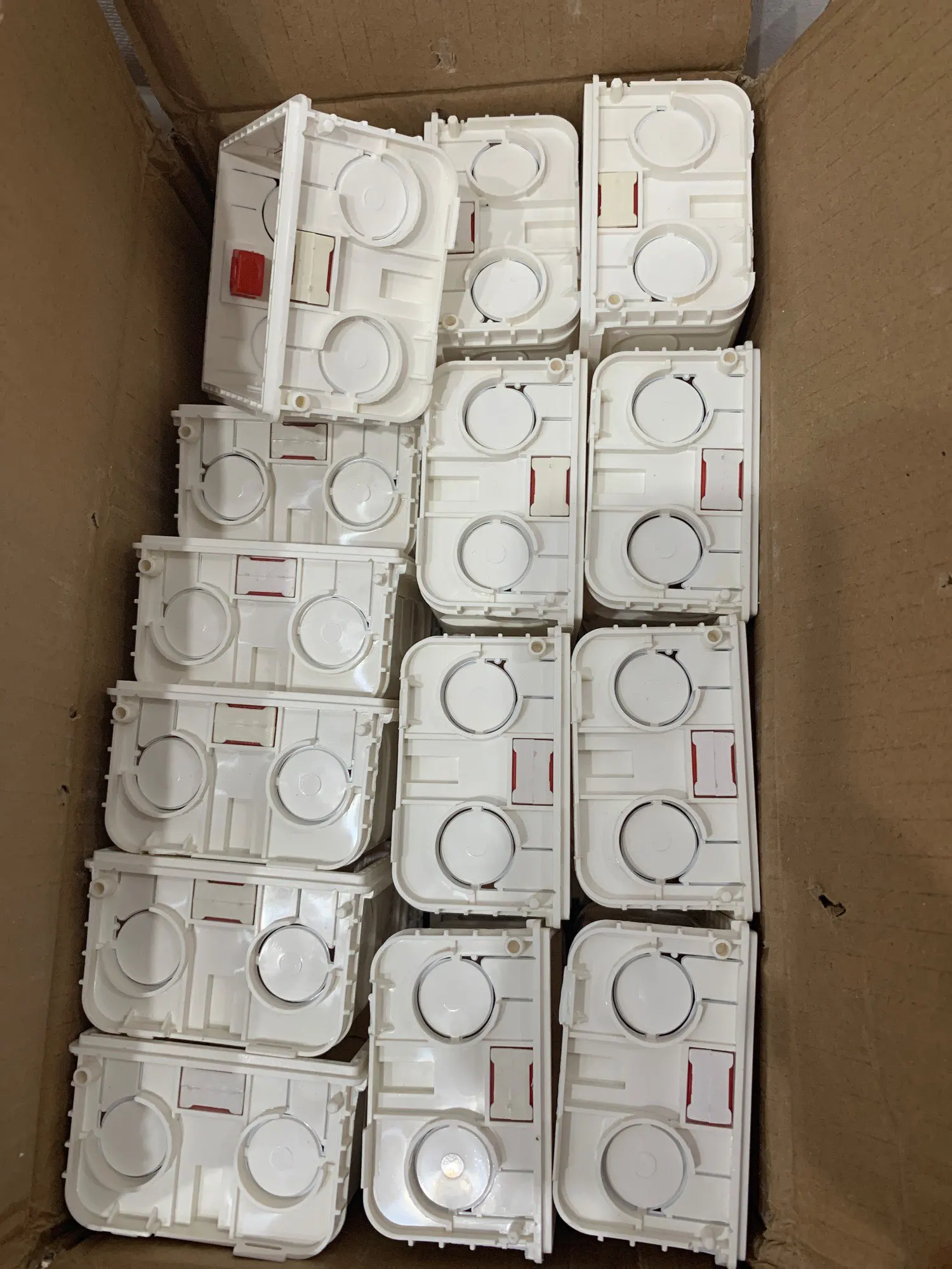 коробки пришли недели за две, сначала заказ розетки и выключатели, думал они зайдут в стандартные коробки аля руссия, но нет,пришлось заказать эти,ещё не монтировал