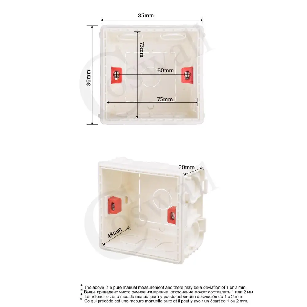 Регулируемая Монтажная коробка Coswall, внутренняя кассета 86 мм * 85 мм * 50 мм для переключателей и розеток типа 86, белый, красный, синий, задняя коробка для проводки