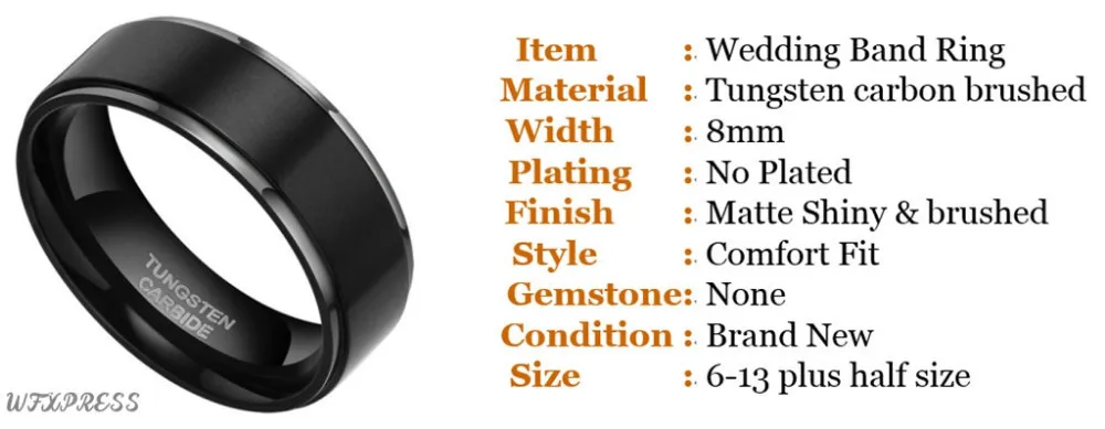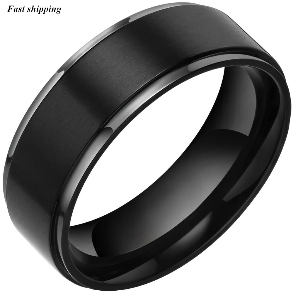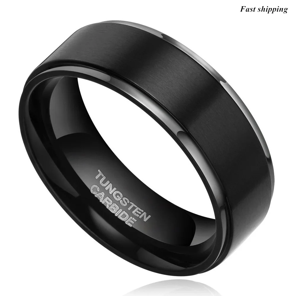 МужскоеМужское обручальное кольцо 8 мм с черным карбидом вольфрама