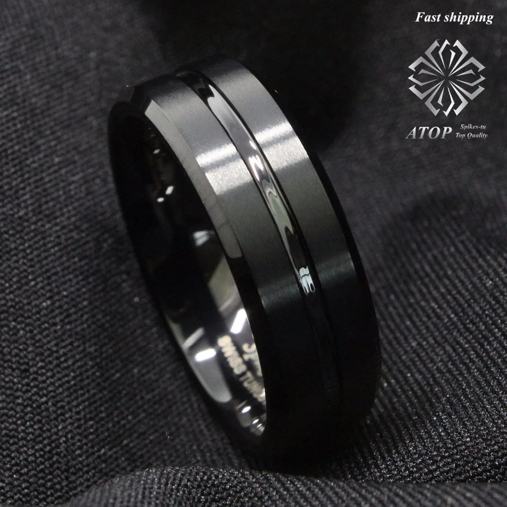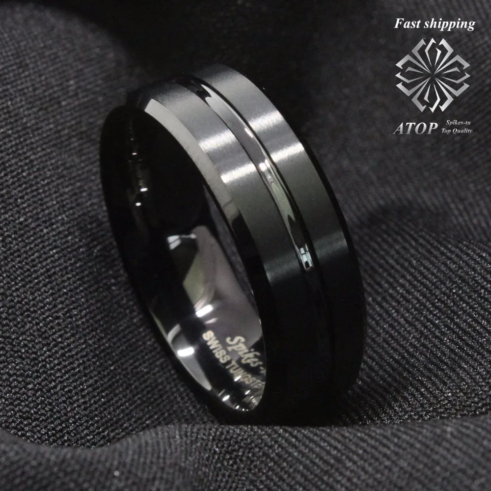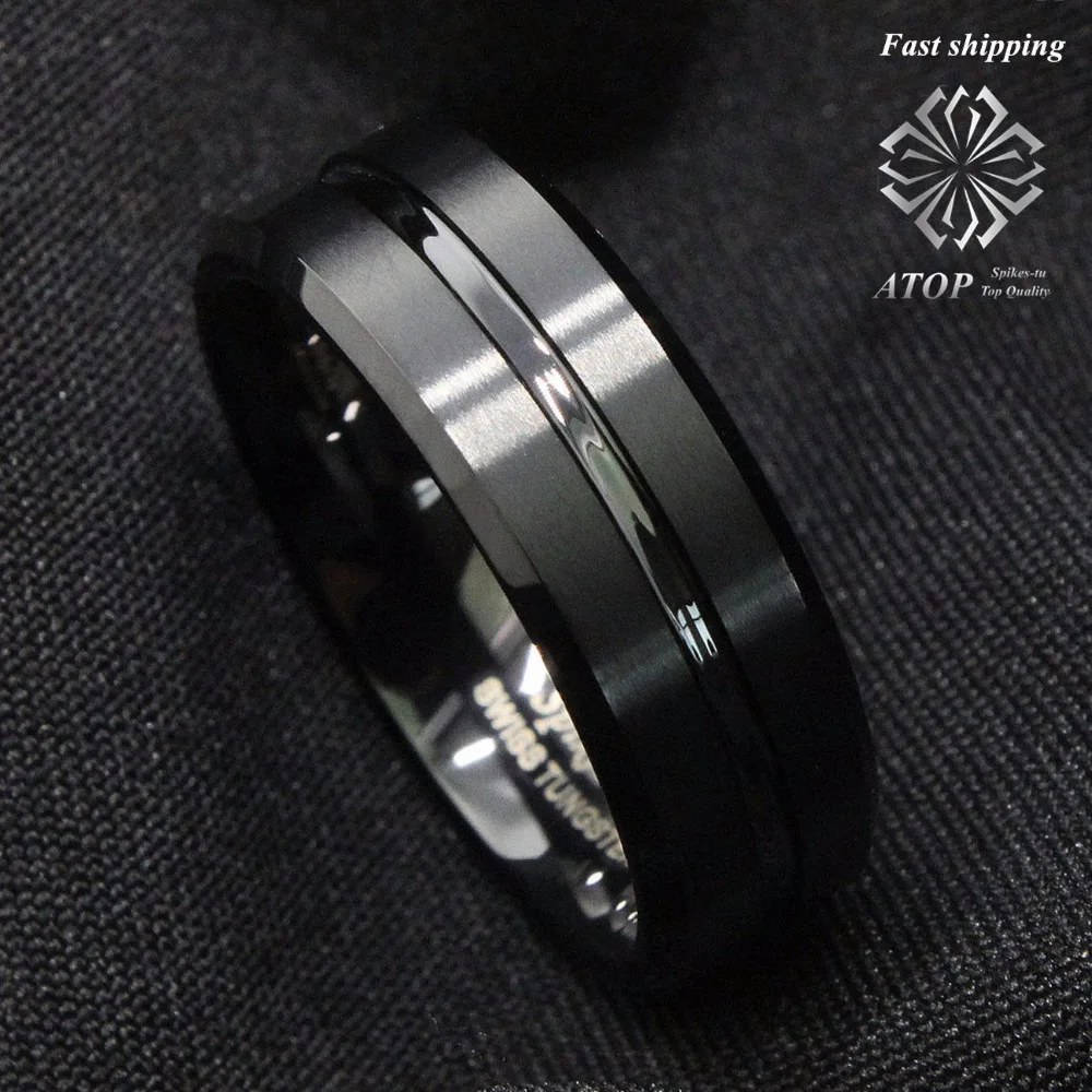 Мужское вольфрамовое кольцо ATOP 8 мм, обручальное кольцо из черног...