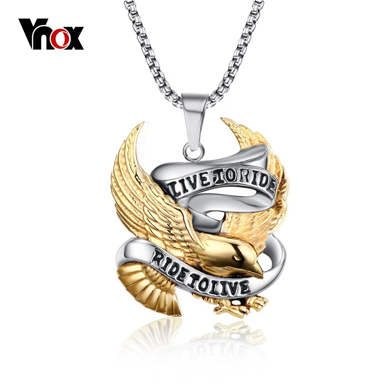 Vnox Орел Цепочки и ожерелья подвеска для Для мужчин Нержавеющая сталь металла жить, чтобы ездить Панк ювелирные изделия