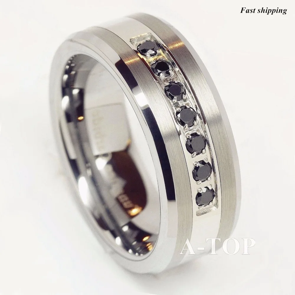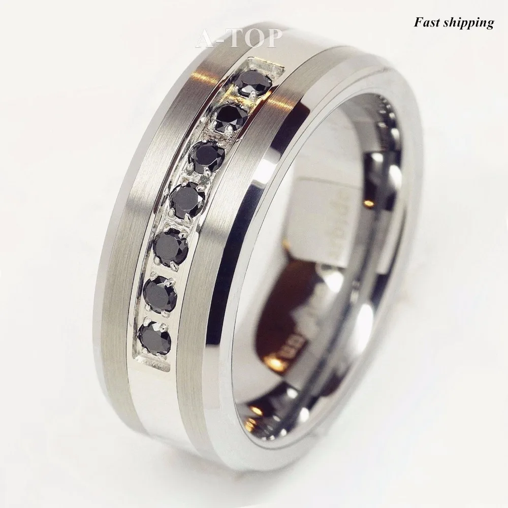 Мужское вольфрамовое кольцо ATOP 8 мм, обручальное кольцо из черног...