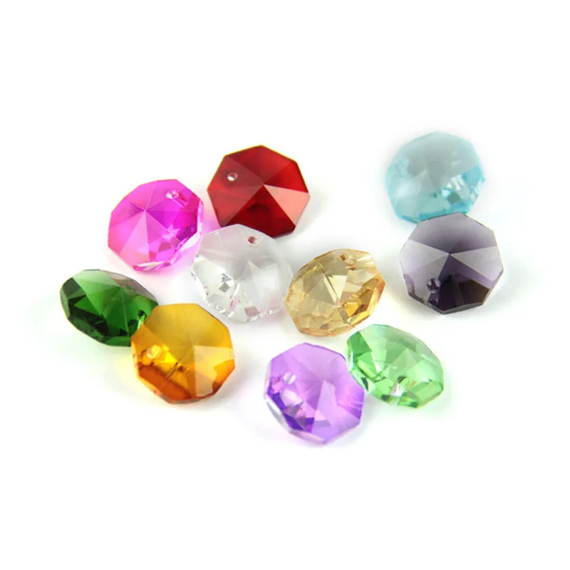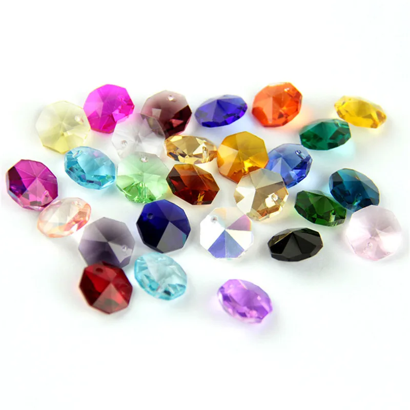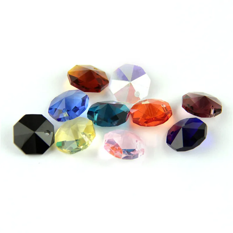 14 мм разноцветные хрустальные призмы Восьмиугольные бусины в одном отверстии DIY рождественская елка бусины двери подвески-бусины для занавески