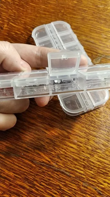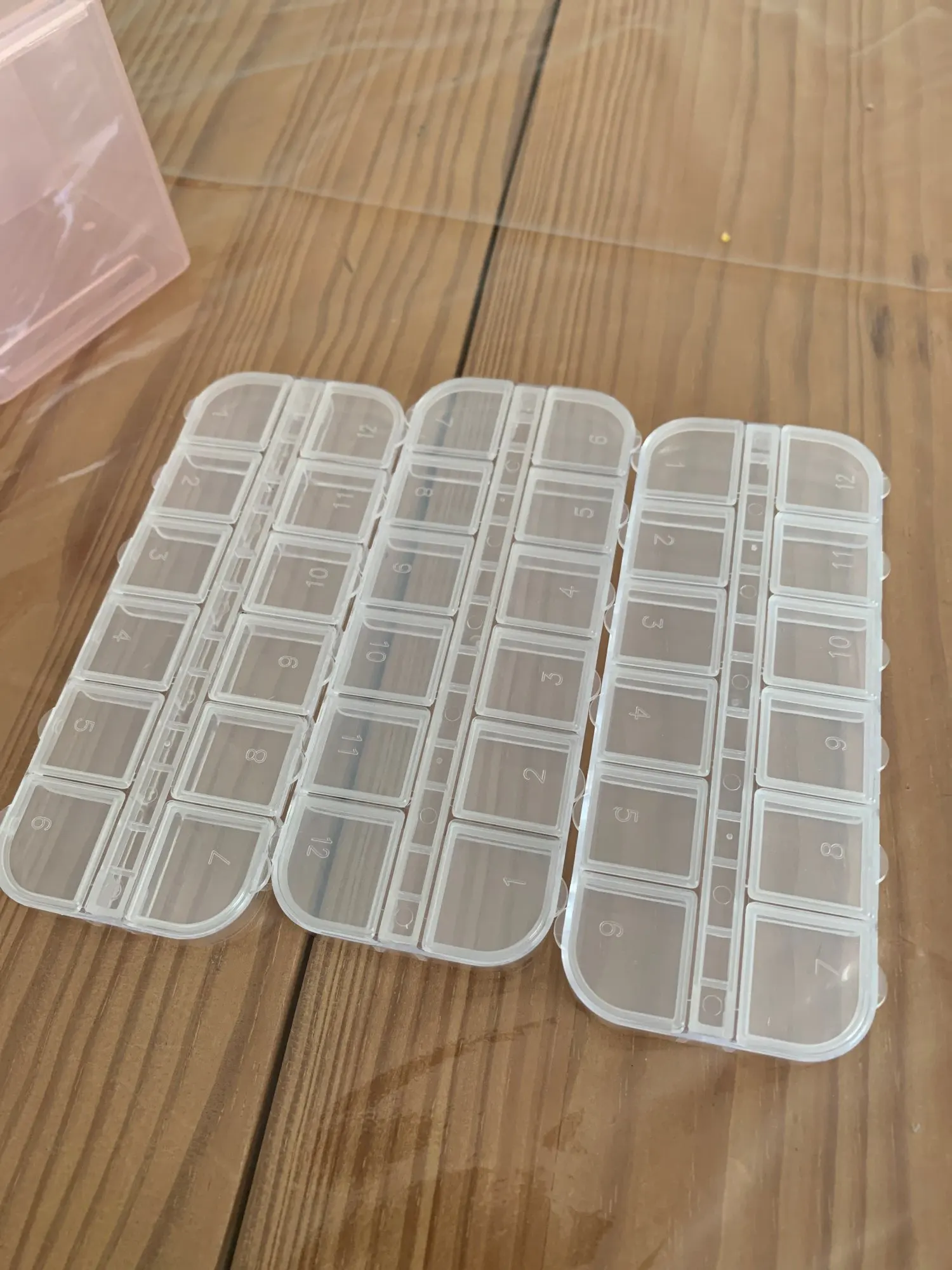 Не очень большие отсеки, помещается полпакетика бисера.