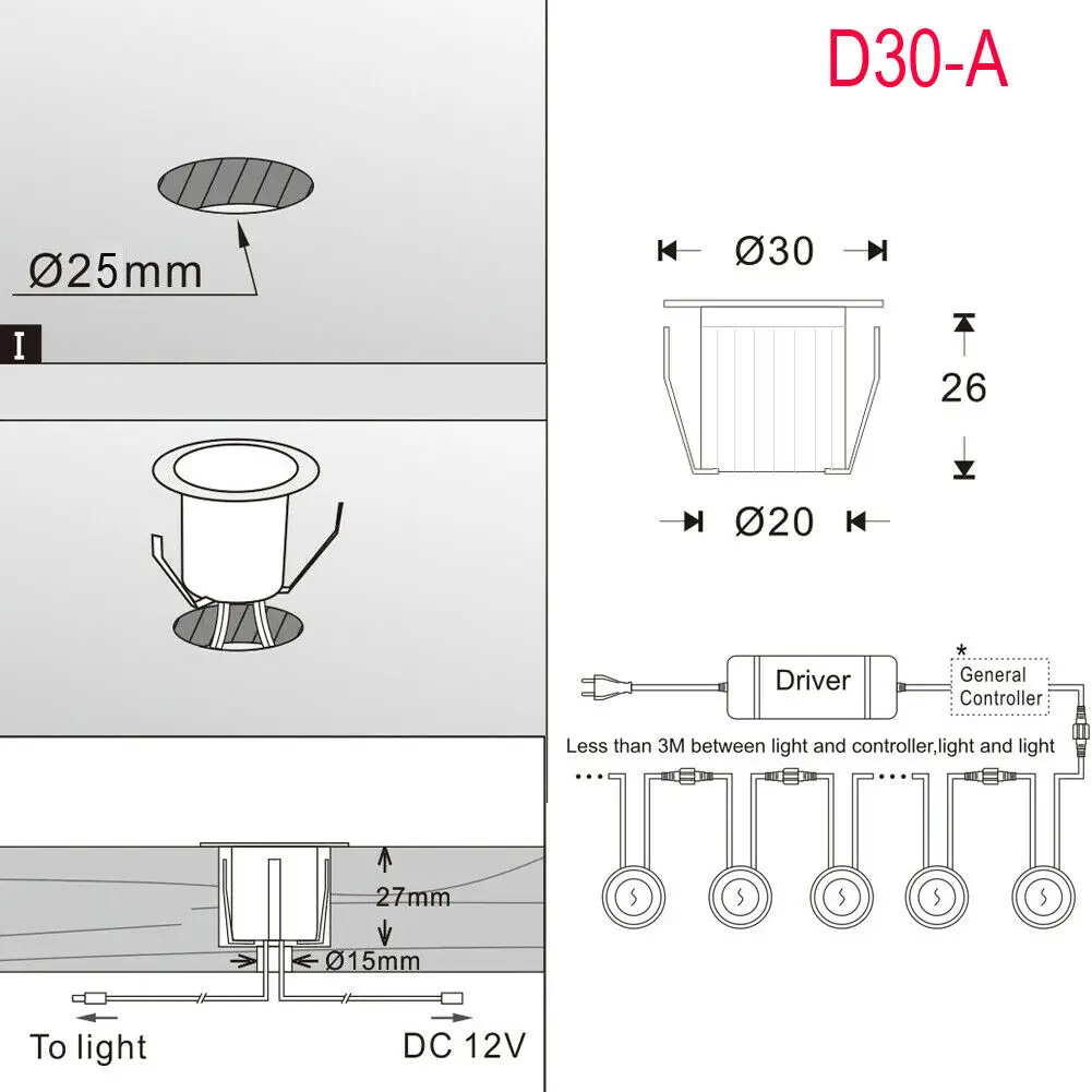 Наш подземный светильник предназначен для украшения, низкая мощность светильник. Расстояние между 2 светильник s должно быть меньше, чем 3 метра. (мы имеем 1-m,2-m,3-m и 0,5 м кабель-удлинитель)