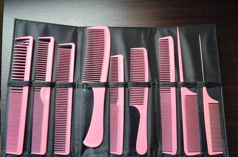 Набор гребней для стрижки волос парикмахерских, карбоновая Расческа для парикмахерских, с чехлом, 9 антистатических карбоновых гребней