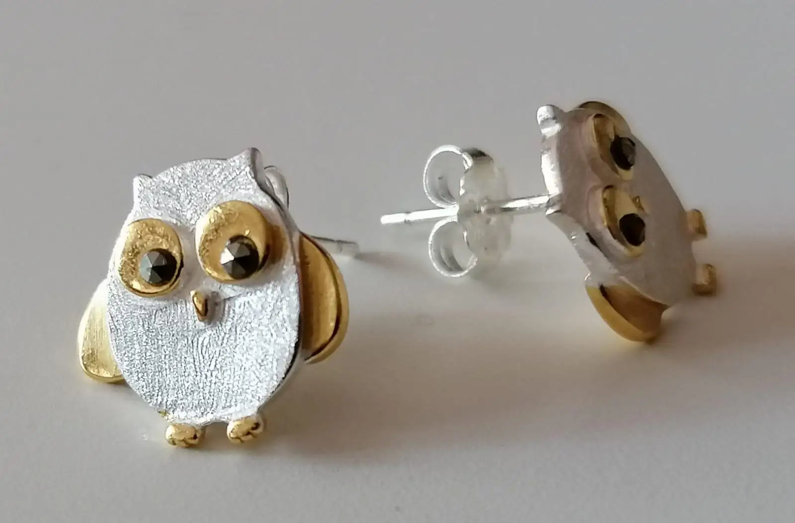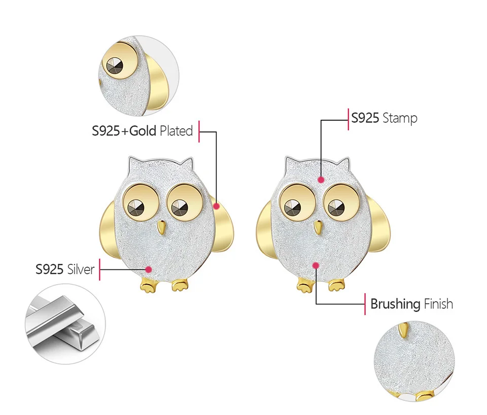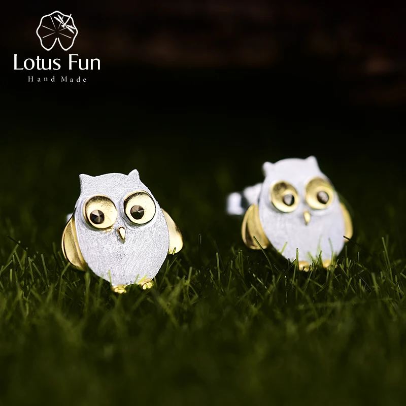 Lotus Fun Реальные Стерлингового Серебра 925 Природный Творческий Ручной Работы Дизайнера Ювелирных Украшений Ctue Сова Стад Серьги для Женщин Brincos