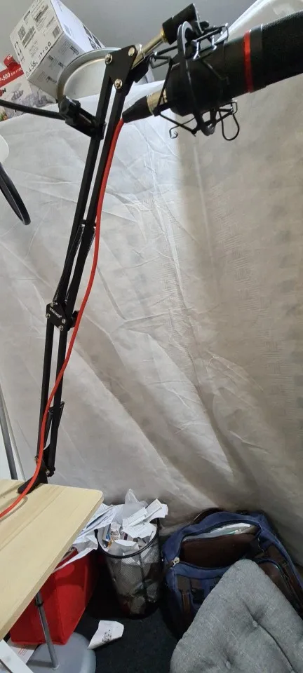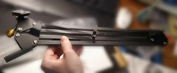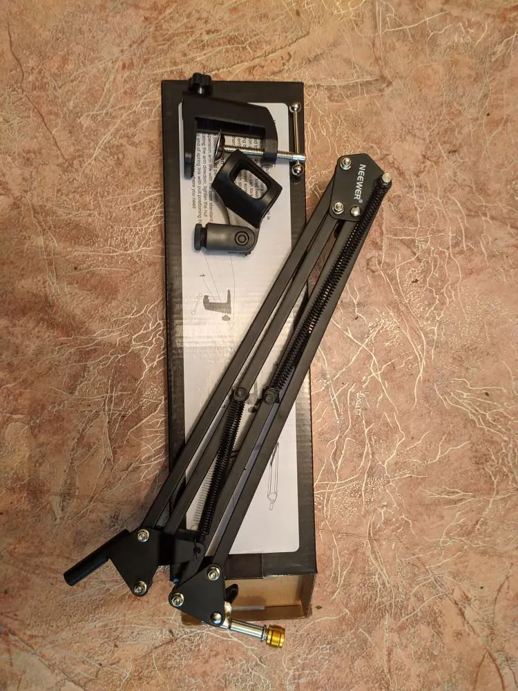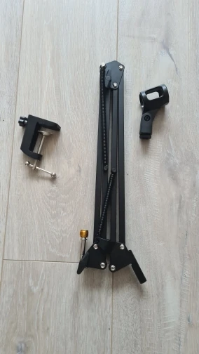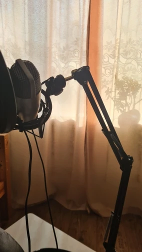 Пока все хорошо, в жизни мельче чем на фото, все вроде металл, но он довольно тоненький. Повесил на него Samson c01u pro, даже эту гайку от самсона не пришлось доставать, тут уже в этой стойке была, я просто снял микрофон с триноги и прикрутил к пантографу. Пока доволен, если че случится, то я напишу.