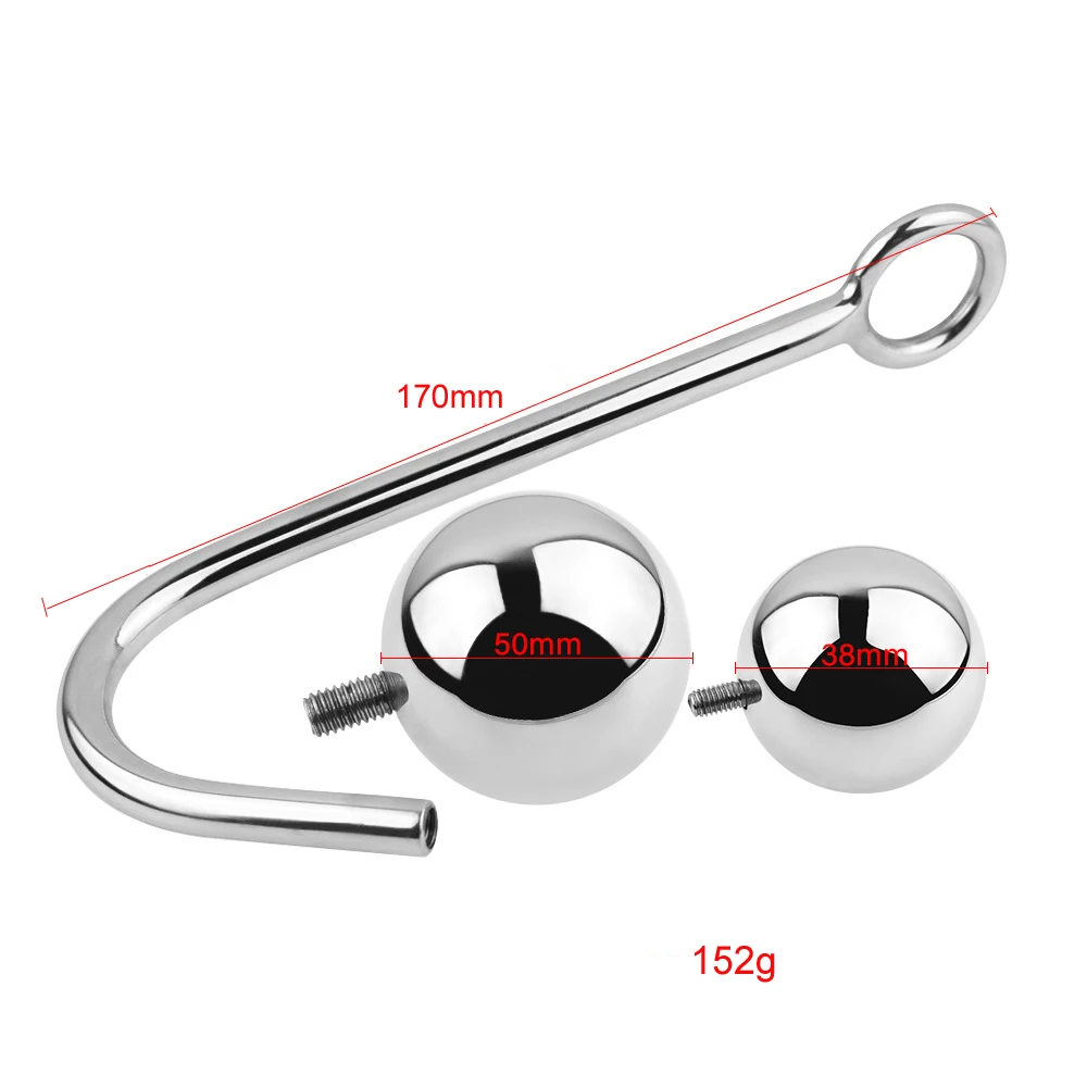 Анальный крючок из нержавеющей стали с 2 анальными шариками, металл...