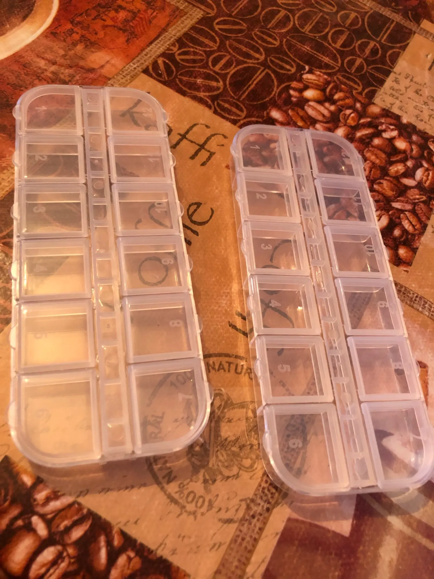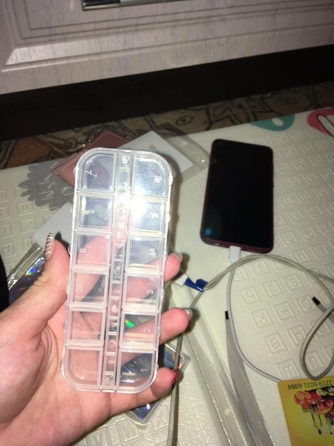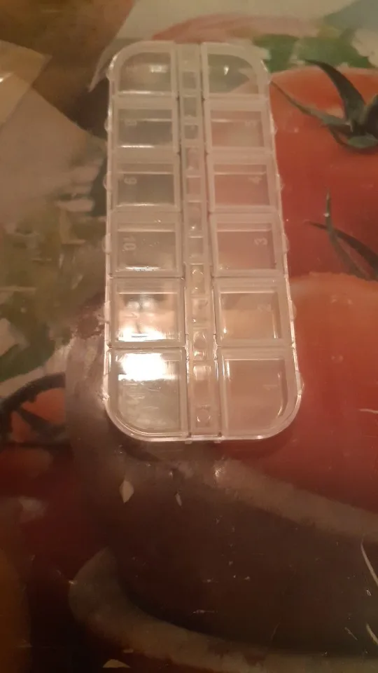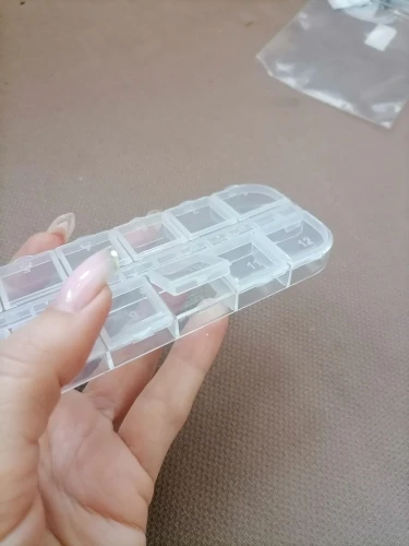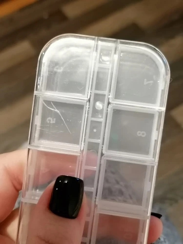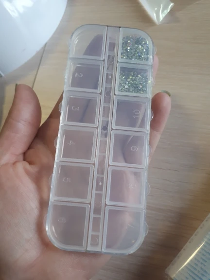 отломилась крышечка сразу при первом открывании. жалко. коробка малюсенькая и все стразы не влезли всеравно. крышки держаться на пластике тонком так что не долговечны