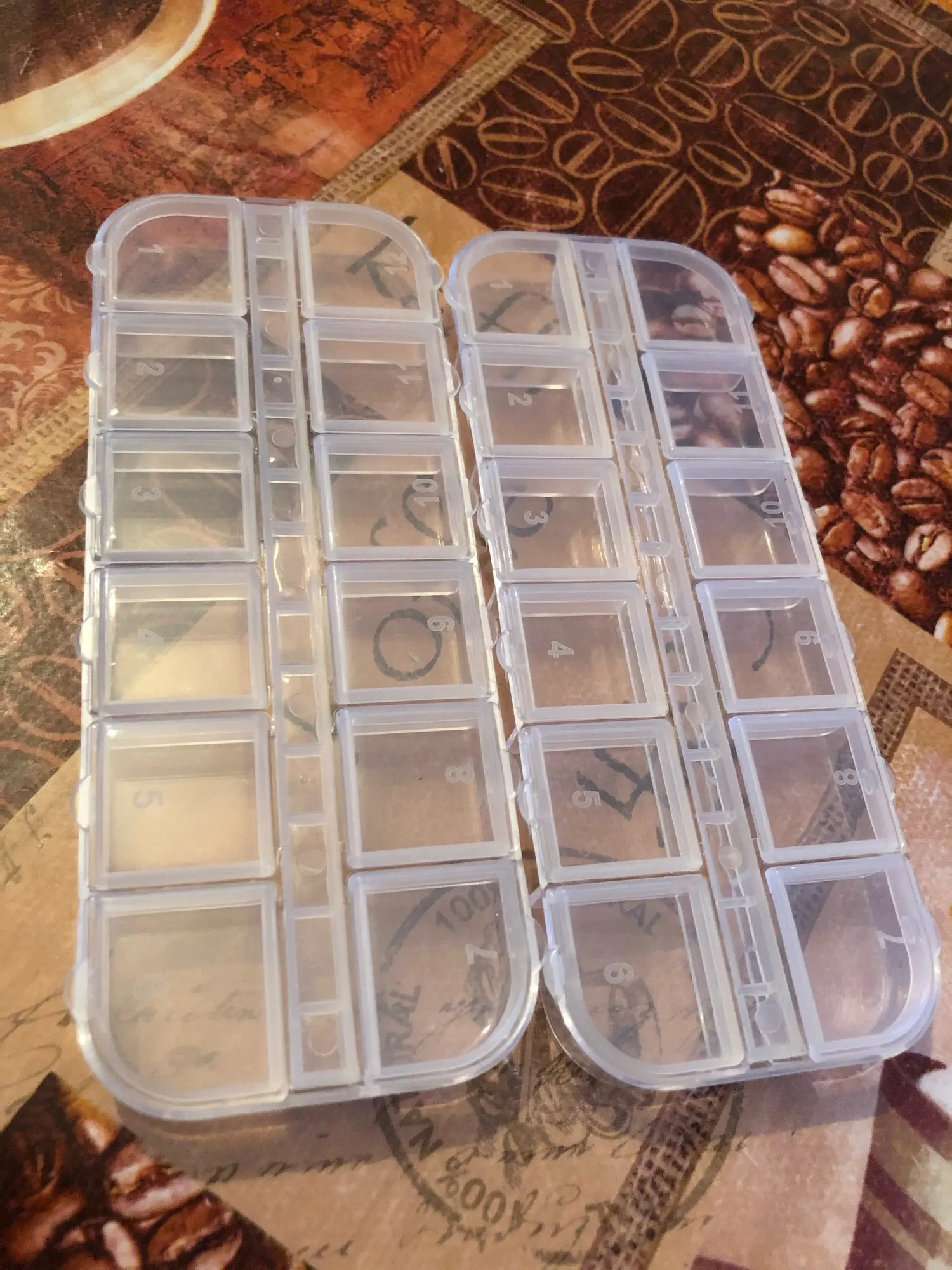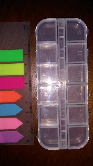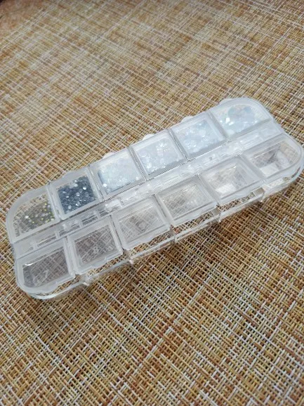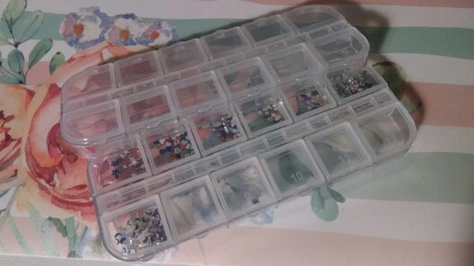 ну очень маленькая коробочка, даже стразы одного цвета не влезли в одну ячейку