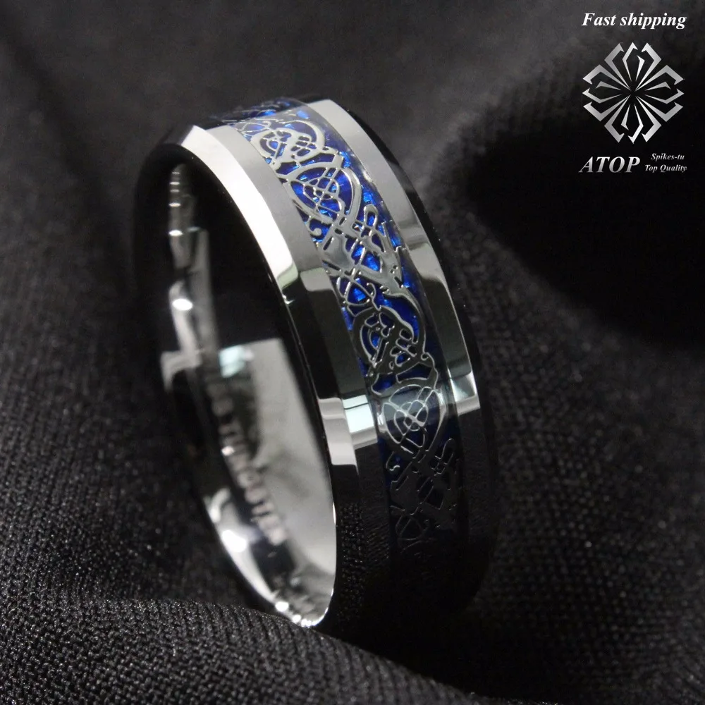 Мужское вольфрамовое кольцо ATOP, 8 мм, с начесом, синего и черного...