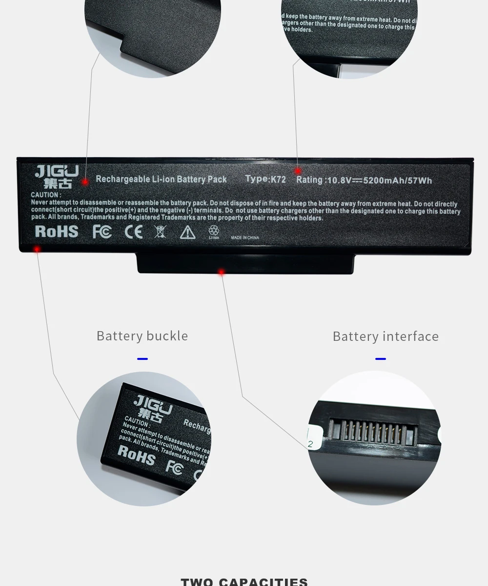 A32-K72 аккумулятора JIGU для ноутбуков Asus, A32-N71 с 6 ячейками для Asus K73E, K73J, K73JK, K73S, K73SV, N71, N71J, N71JA, N71JQ, N71JV, N71V, N71VG, N71VN, N73