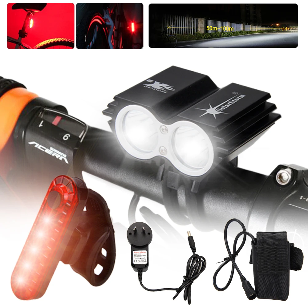 Светодиодный фонарь 5000 лм 2x XM-L U2 светильник фонарь, Головной фонарь для велосипеда, светильник головного света + аккумулятор 6400 мАч + светильник