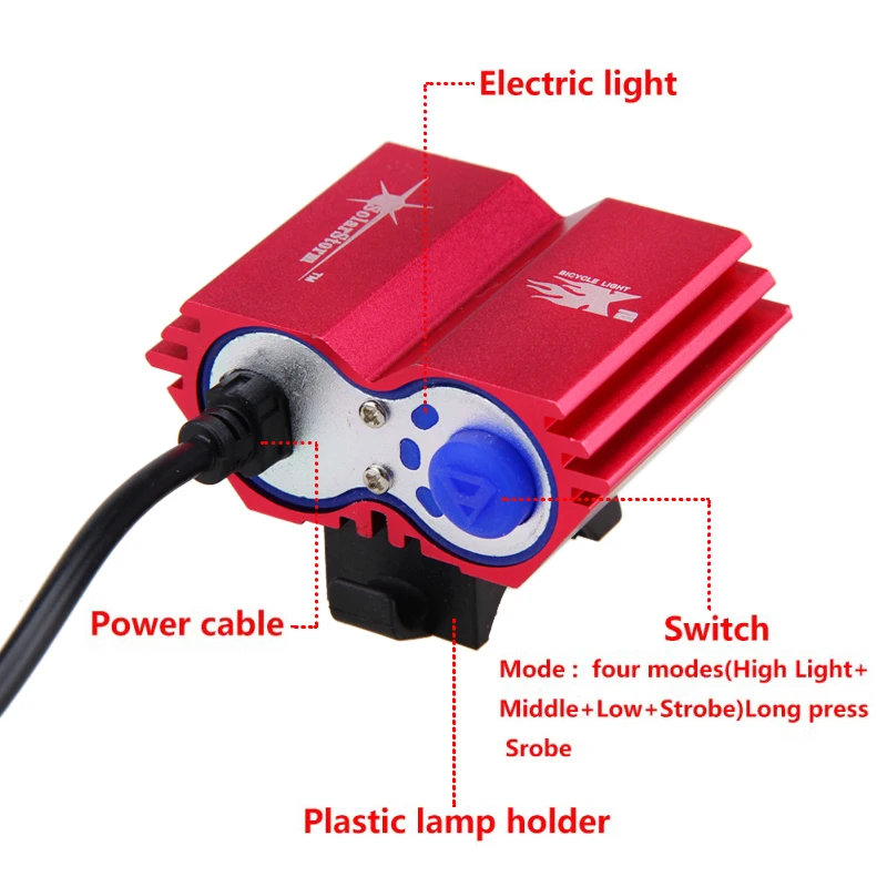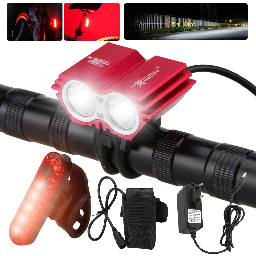 1 x налобный фонарь XM-L U2 светодиодный светильник2 x Резиновое кольцо для установки1 х 8,4 в 6400 мАч аккумулятор1 зарядное устройство переменного тока (100-240 В)1 х 5-светодиодный задний светильник1 х переходник для вашей страны