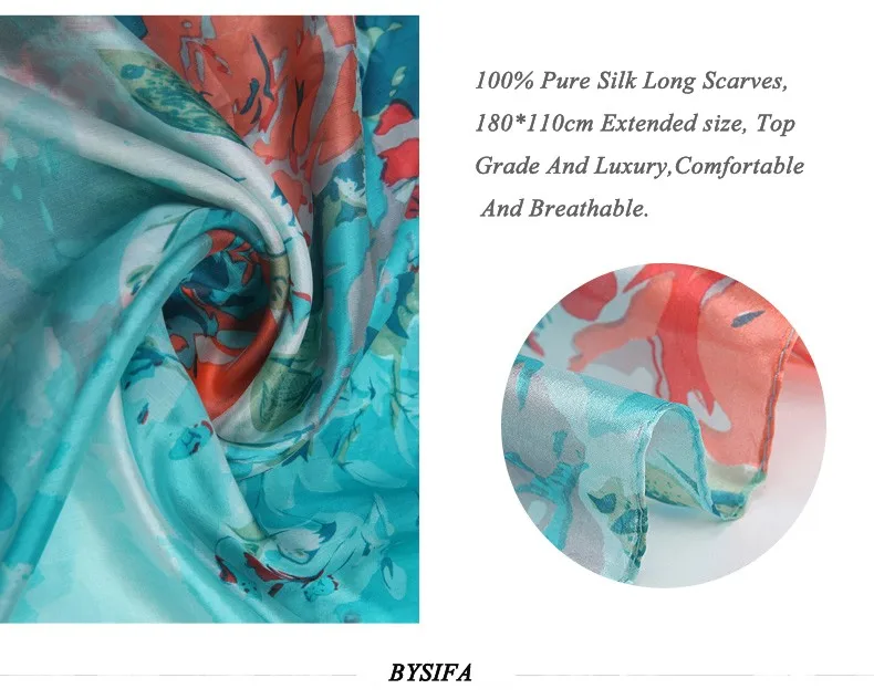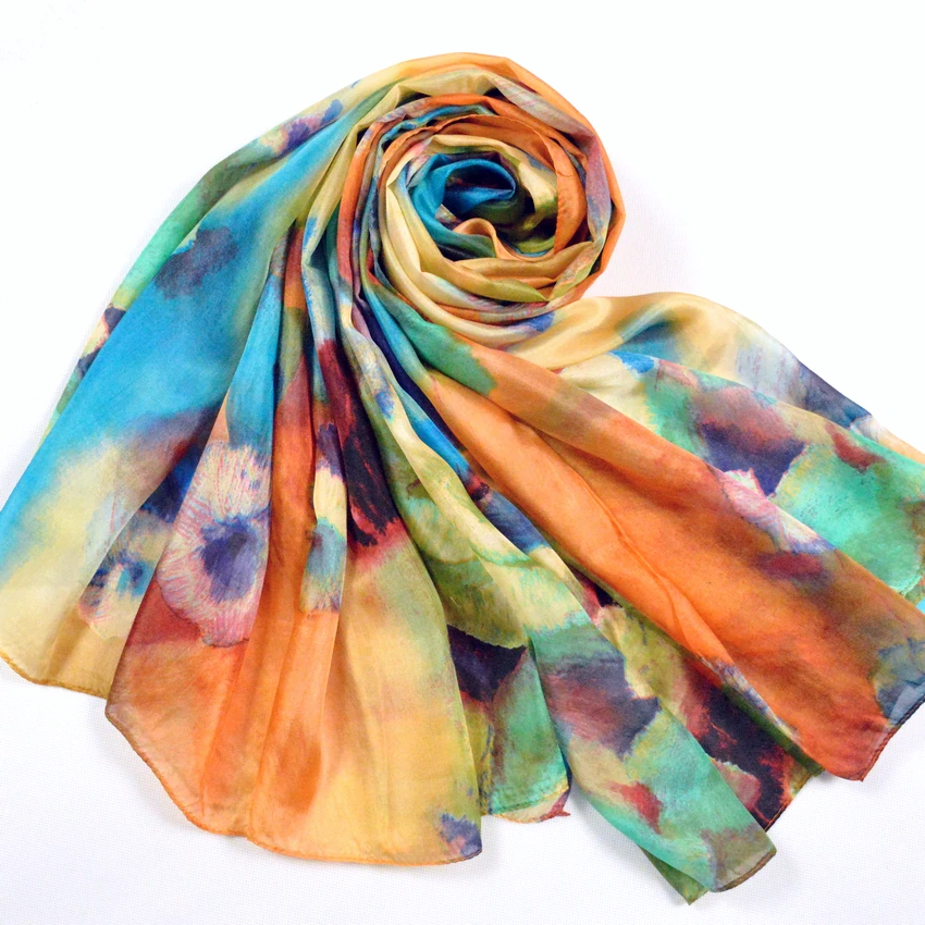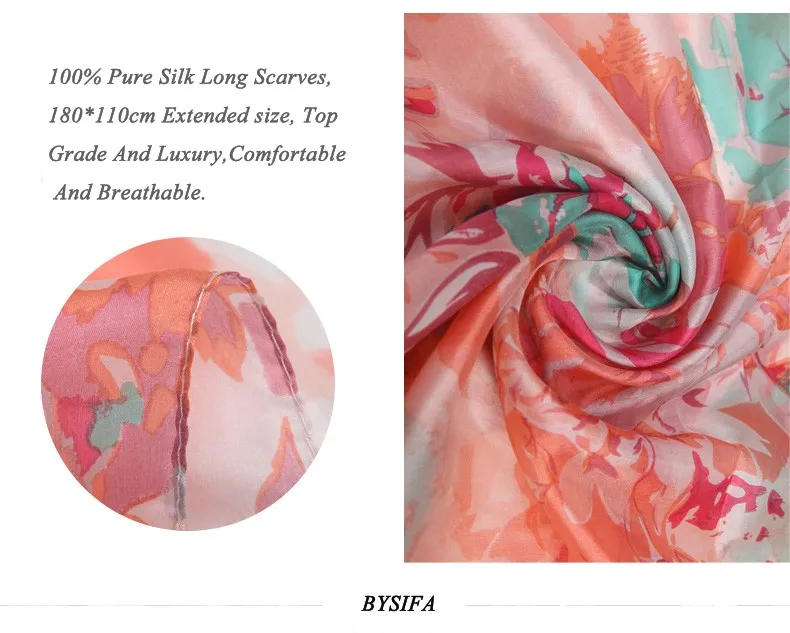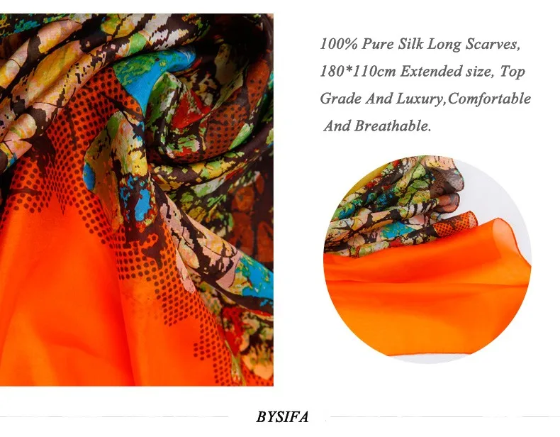 Женский шелковый шарф размера плюс BYSIFA, шарф из расширенного шелка, зимний длинный шарф оранжевого или кофейного цвета