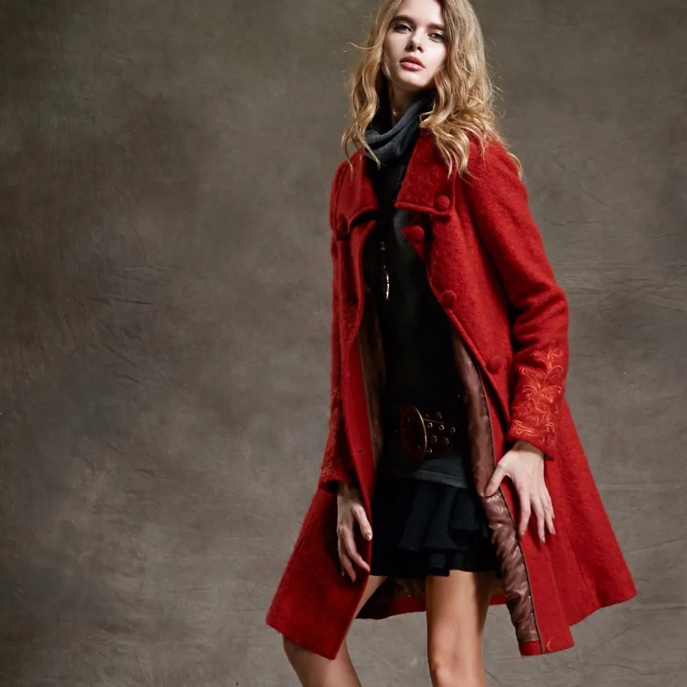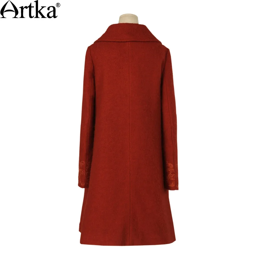 Женское шерстяное пальто ARTKA, Красное длинное пальто с винтажной вышивкой, FA10240Q, Осень-зима, 2018