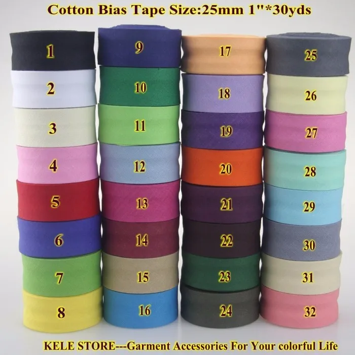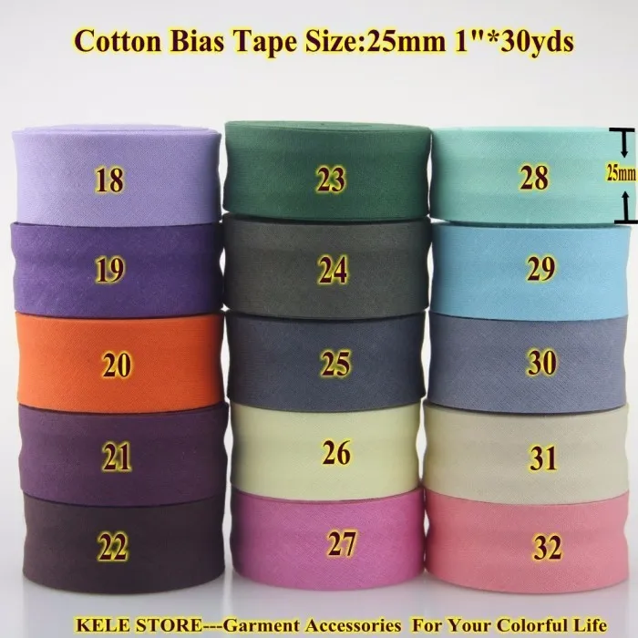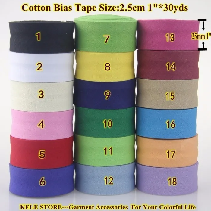 Бесплатная доставка-лента из 100% хлопка, размер: 25 мм, ширина: 1 дюйма, 2,5 см, 30yds хлопок, одноцветная лента, оранжевый, зеленый, желтый