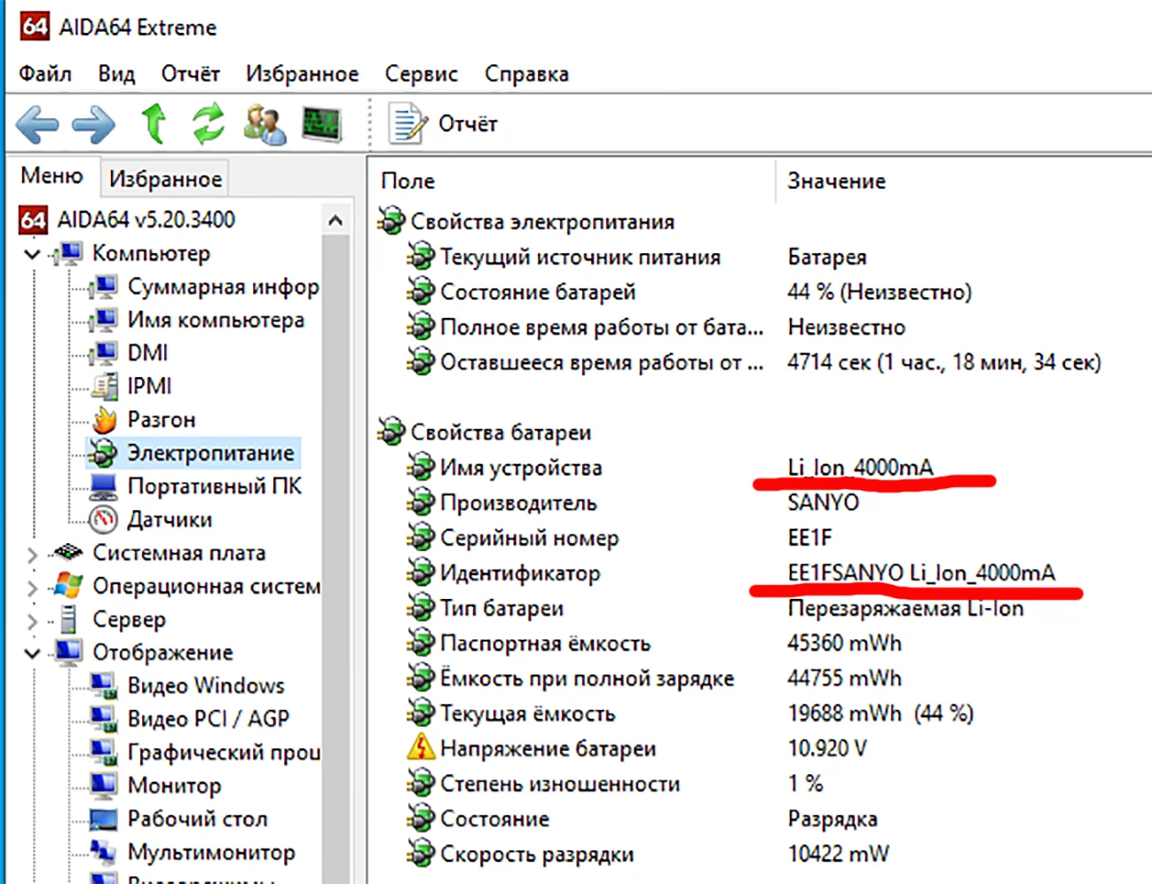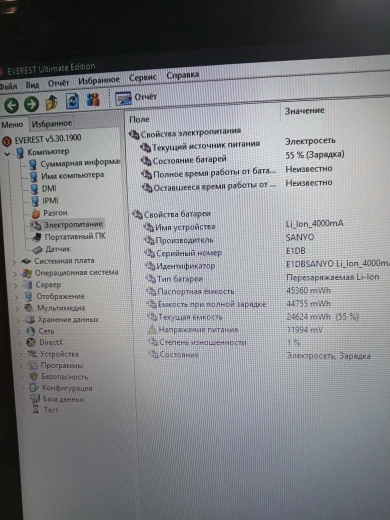 Ноутбук определил батарею как Sanyo 4000 MAh заказывал самую дорогую.