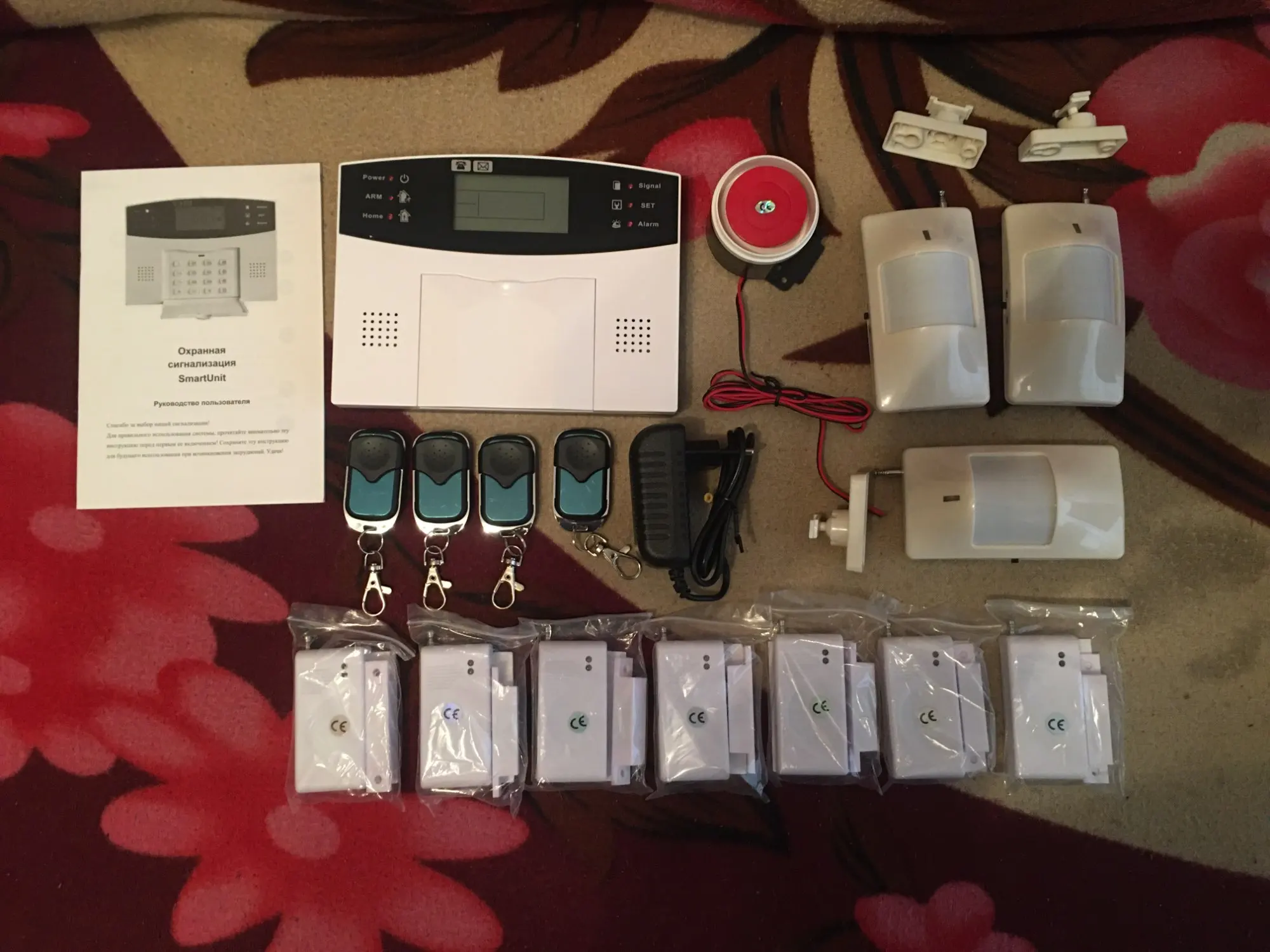 Все пришло за неделю, правда экспресс доставкой. В целости, во вложении хоть и скупая, но достаточно качественно переведенная инструкция на русском. Сама сигнализация тоже русифицирована. Брелки и датчики подключились без проблем. Пока положительные впечатления.