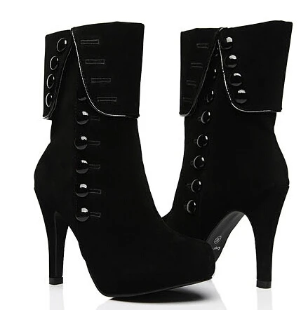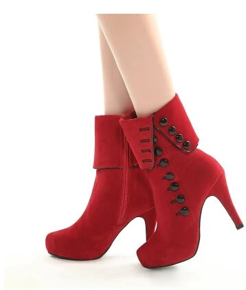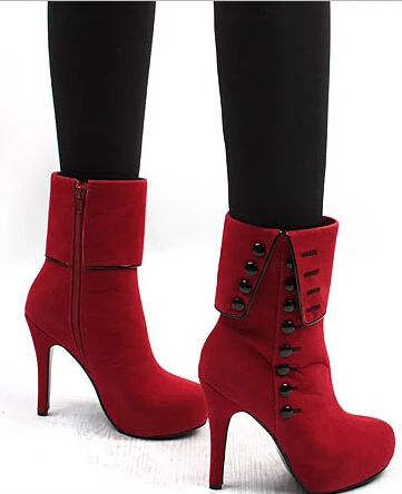Женские ботинки из флока на шпильке, с круглым носком и молнией сбоку