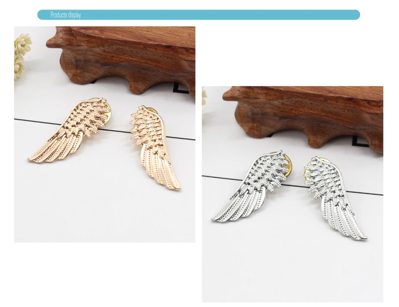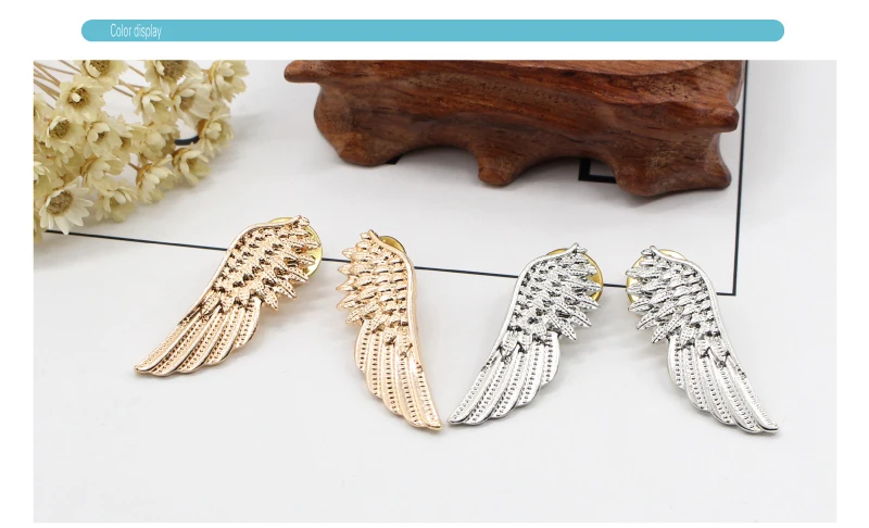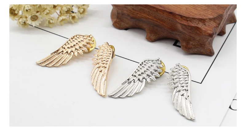 Булавки для воротника мужские и женские, золотистые металлические, с перьями броши в виде крыльев, 1 пара, брошь унисекс