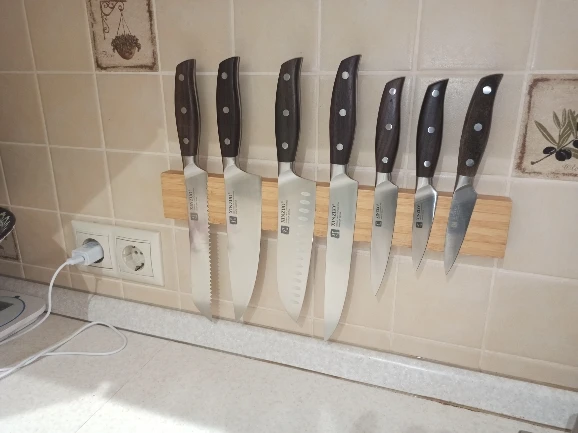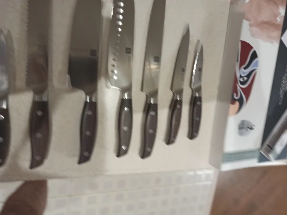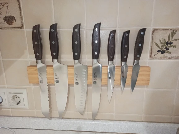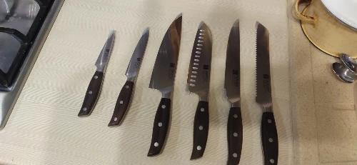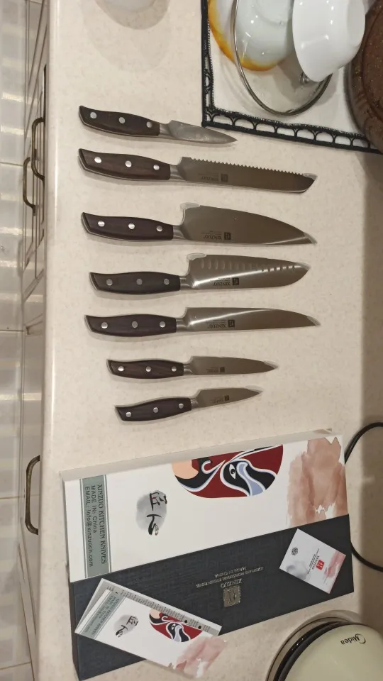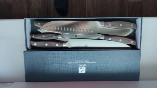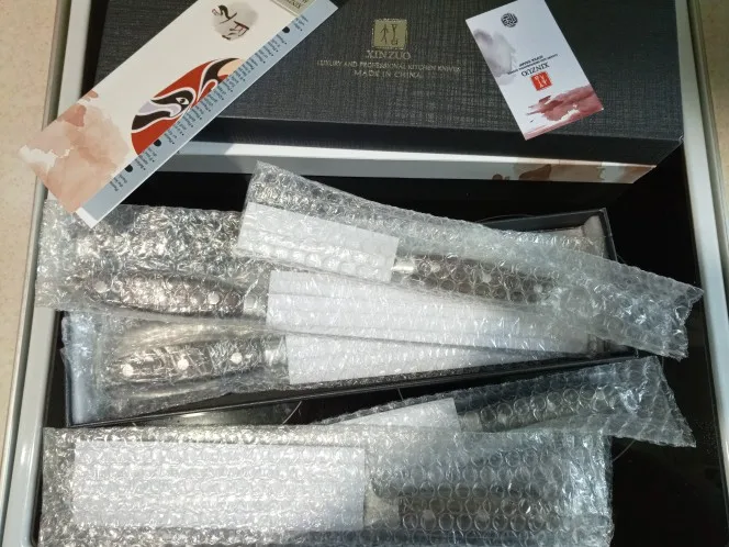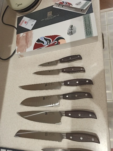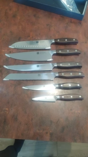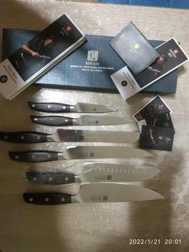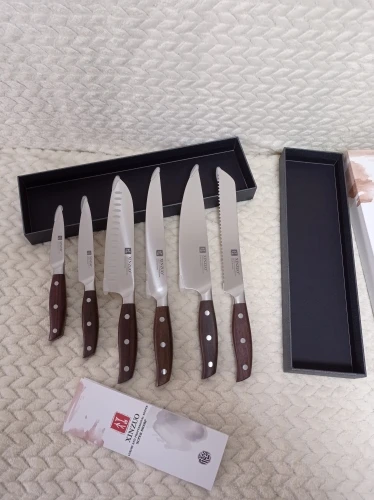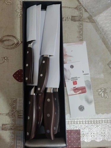 Прекрасные ножи. Сталь упругая, для изгиба нужно приложить серьёзное усилие. Острые из коробки. Ручки деревянные, не круглые, поэтому очень хорошо лежат в руке. Упаковка в 10 слоёв, всё в воздушной плёнке, каждый нож упакован индивидуально. Доставка очень быстрая - около 5 дней в Петербург. Обсмотрелся обзоров - эти ножи хвалят все, включая ножевых гиков. Взял чуть меньше чем за 5000, очень доволен. Для заточки взял мусат того же бренда XINZUO, он в пути из Китая.