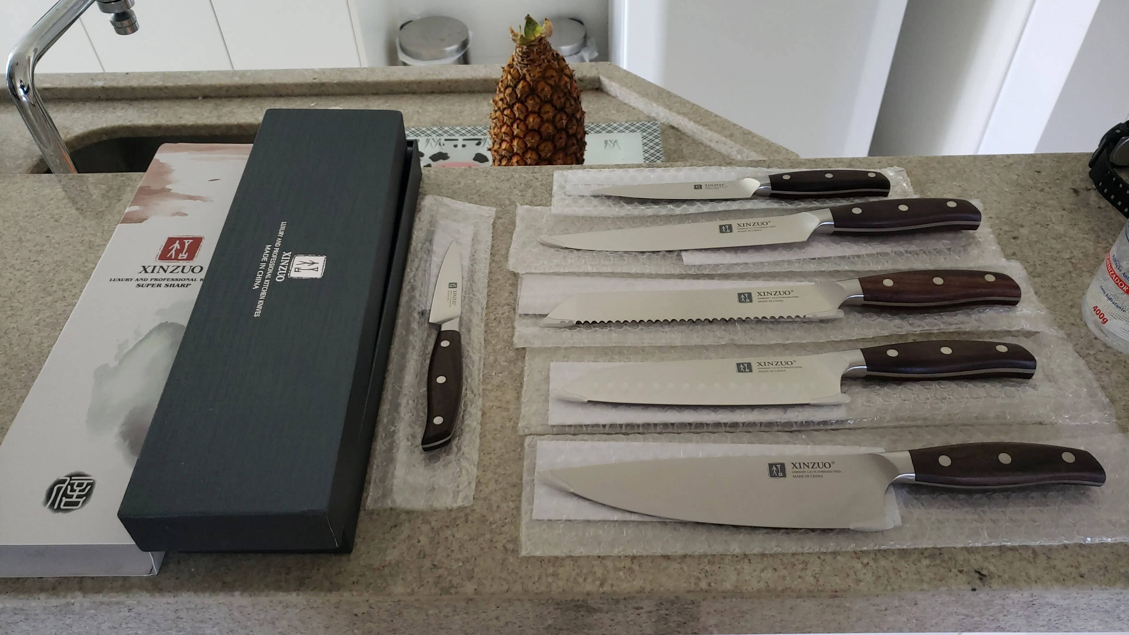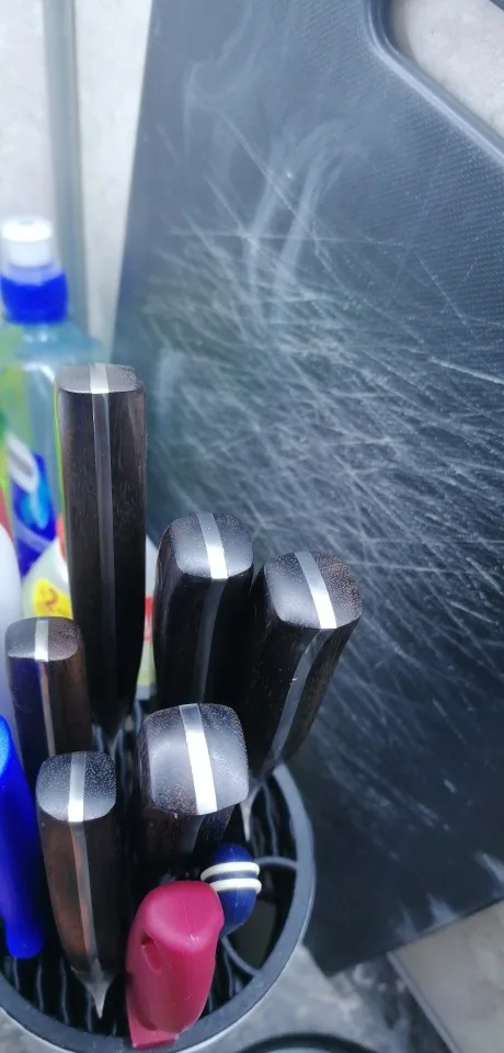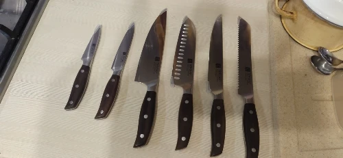 Excelentes cuchillos en todos los sentidos: calidad del material, afilado, ergonomía, presentación del producto (tanto para protección como para regalo: empaque). Entregado muy rápido y bien protegido. Solo faltará valorar durabilidad: afilado y corrosión (si surge alguno de esos problemas, avisaré)