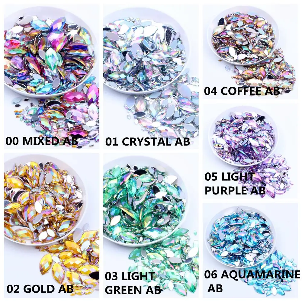 6x12 мм 50 шт Акриловые стразы с плоской задней стороной, заостренные граненые огранки, AB цвета, клей для рукоделия, бисер, сделай сам, изготовление ювелирных изделий