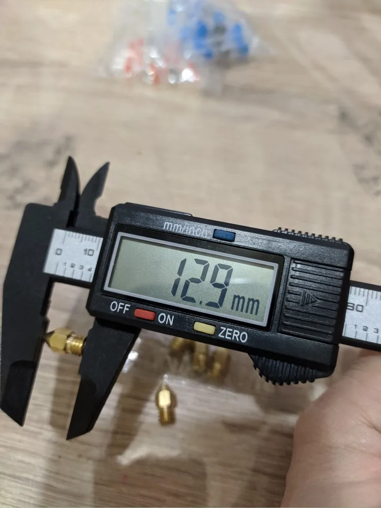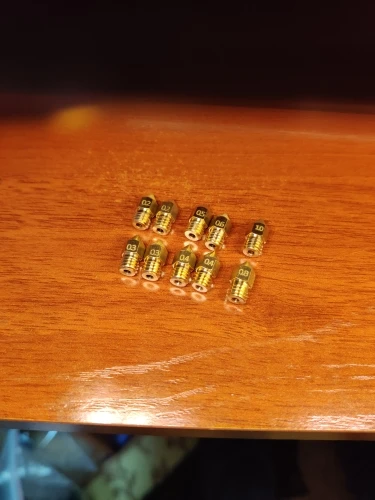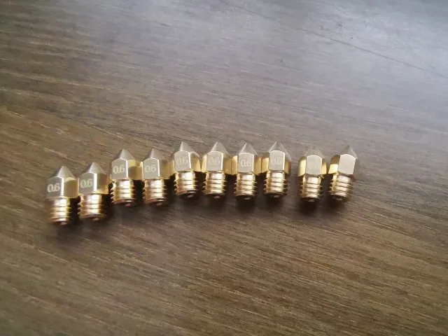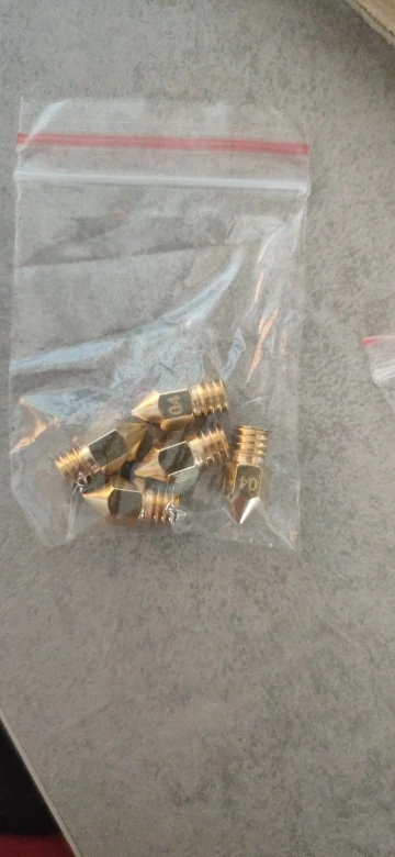 Заказывал микс 0,6 - 2 штуки, 0,8 - 2 штуки, 1,0 - 1 штука. По комплектации всё отлично, но одно сопло 0,6 было со сколом на кромке. Теоретически на печати горизонтальный внешних поверхностях должно быть заметно, но на практике не проверял. Специально брал по 2 штуки на случай брака.
