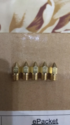 Время доставки 30 дней, это нормально с учетом способа доставки. Насадки выглядят хорошо, еще не тестировали их, потому что на данный момент мой принтер напечатан нормально. Я оставлю эти насадки в качестве запасных частей. Размер сопла выгравирован сбоку.