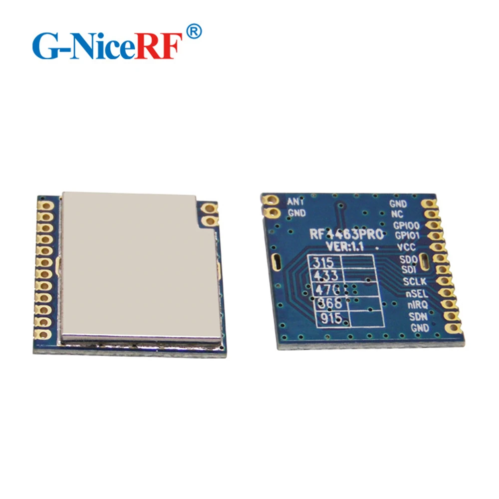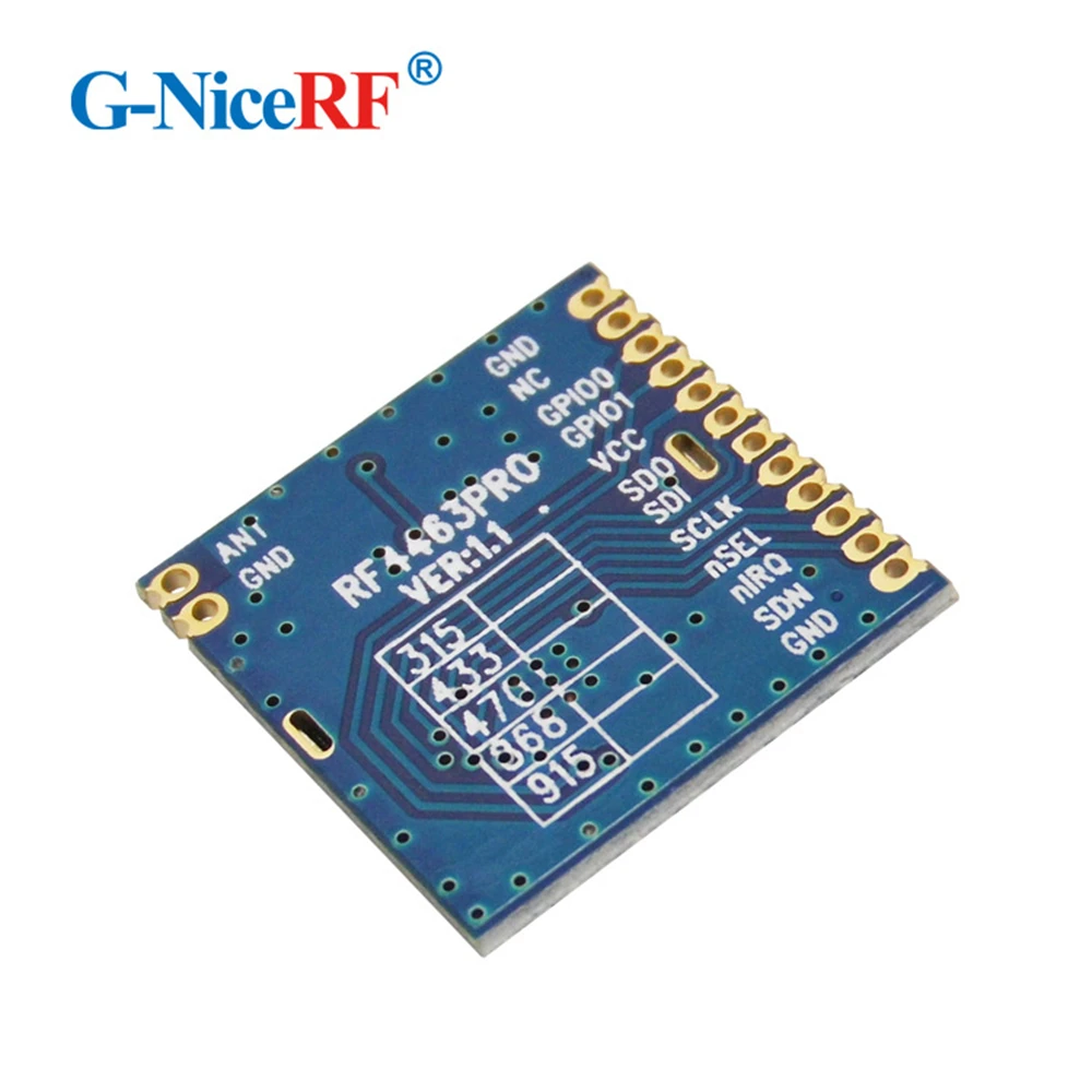 В RF4463PRO используется радиочастотный трансивер SiliconLab EzradioPro2 Si4463, который представляет собой высокоинтегрированный беспроводной диапазон ISM чип трансивера. Особенности высокой чувствительности (-121 дБм), + 20 дБм выходной мощности, низкое потребление тока, кристалл 10PPM, И хорошая схема подбора радиочастотных сигналов обеспечивает хорошую работу этого модуля в жаркой/холодной среде с надежной связью и большим расстоянием.