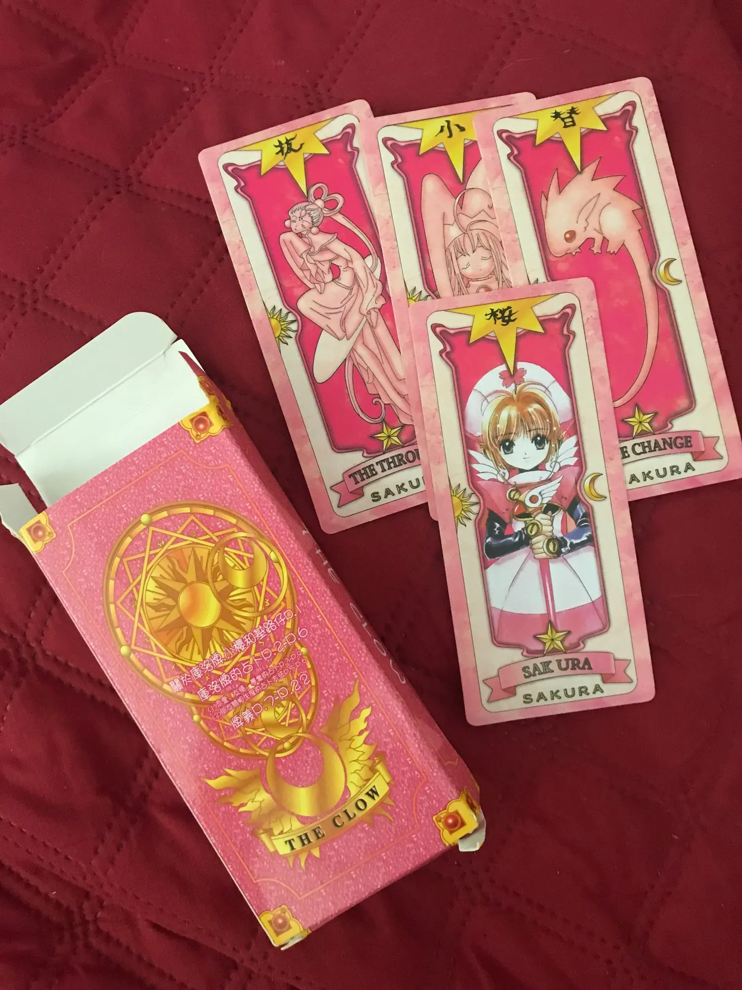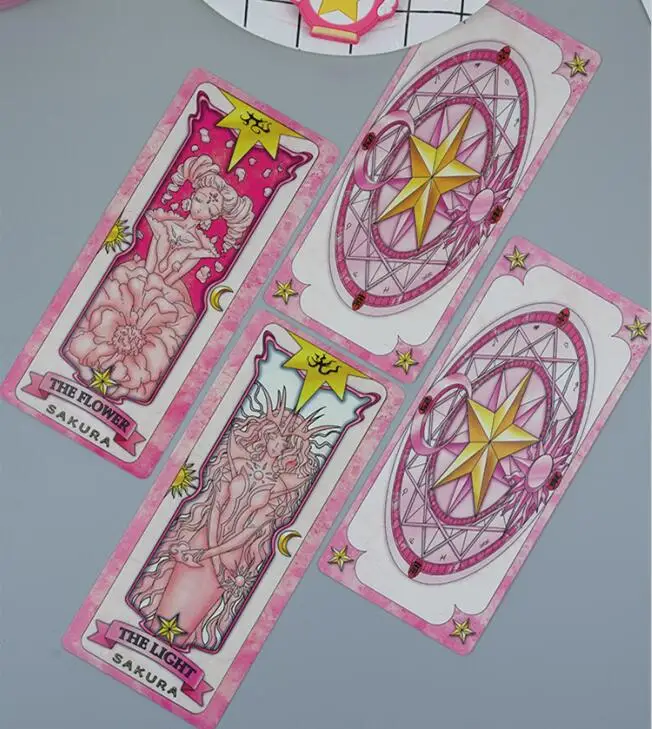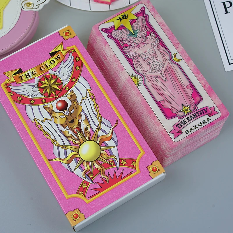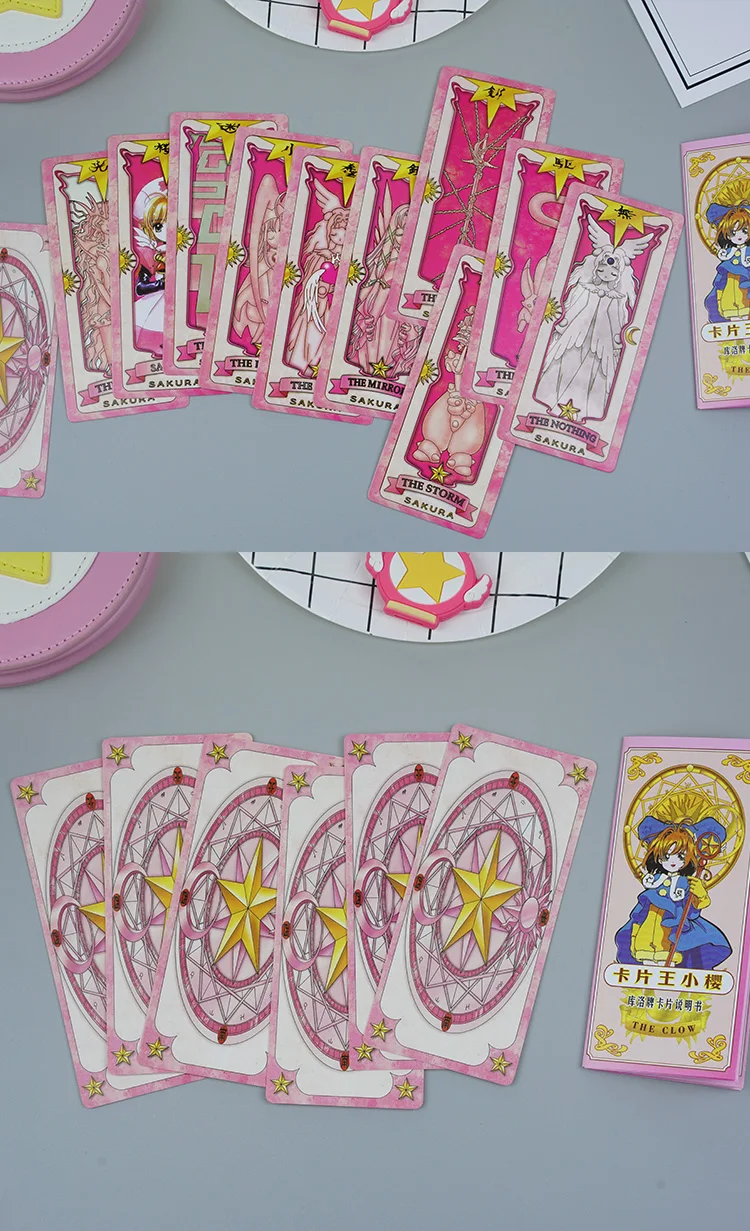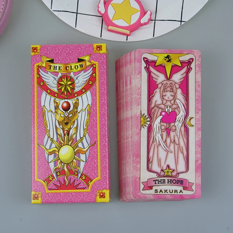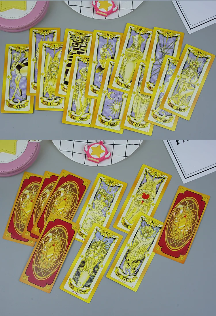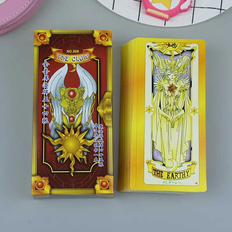 Карточные наборы Cardcaptor Sakura, 56 шт. + дополнительные 3 фотоэлемента, волшебный карточный чехол Tarot, карточки Clow, реквизит для косплея, Божественный реквизит