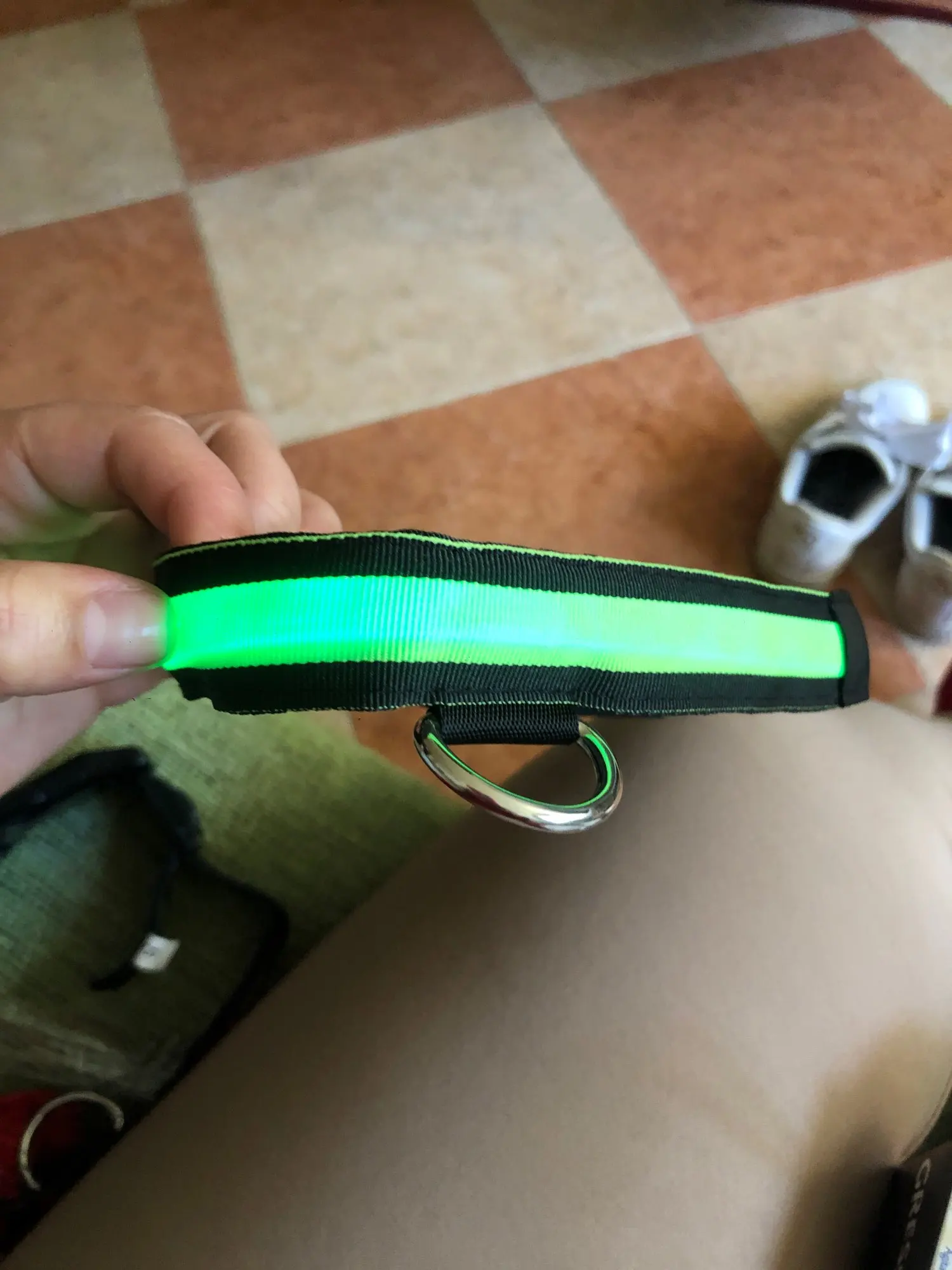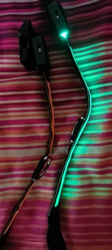 Заказано 28.12, получено 15.01, доставляла как я поняла Новая почта, респект. Сам ошейник прямо скажем хиленький, но аккуратный, нитки особо не торчат. Светит правда ярко, хорошо видно и под фонарями, в то же время не слепит глаза в полной темноте. Самый главный минус - длина светящейся ленты. Она 26 см - то есть светится только половина ошейника :( Тут жалуются на непрочное кольцо - ребят, вы видели вообще как там закреплён конец стропы? Никак. Я бы на этот ошейник даже спаниеля не прицепил, он не может быть основным. Буду подшивать кончик, может вообще к шлейке пришьют, потому что у моей собаки он теряется в длинной шерсти на шее и с половины ракурсов его вообще не видно) Если у вас тоже пушистик и вы ходите на ошейнике, можно нашить на основной ошейник петельки/карман для светящейся ленты и будет классно. За свою цену как светяшка нормально.