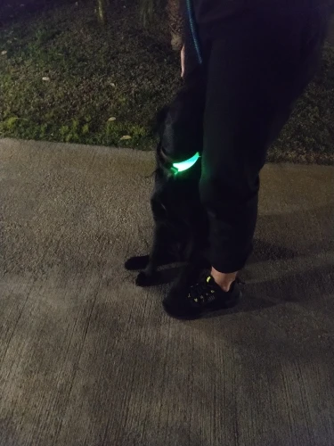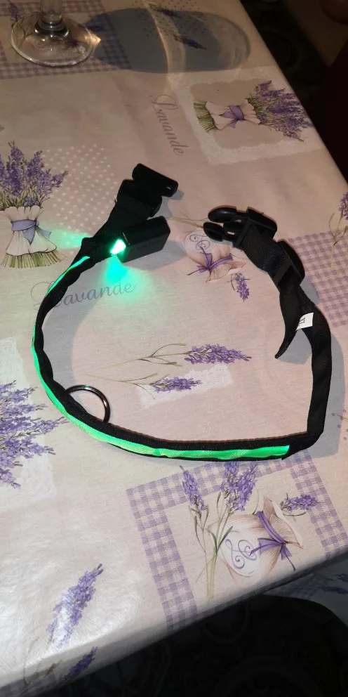 Потрясающе. Очень доволен. Даже лучше, чем я ожидал. Батарейки не требуются, без зарядки. Цвет красивый и имеет 3 функции освещения. Вы можете настроить его на шею вашей собаки. Размер XL действительно большой. Моя собака полная, но она очень большая, даже для гораздо больших собак. Но лучше быть большим, чем маленьким. Освещение очень заметное в ночное время. Теперь я могу гулять ночью с собакой. Доставка в Австралию 2 месяца.