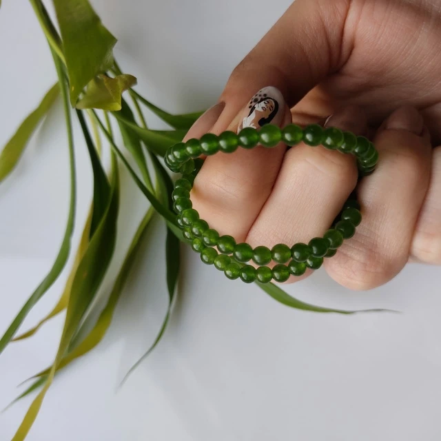 Необыкновенно красивые бусины нефрита. Я выбрала диаметр 6 мм, количество бусин на леске 63 штуки, как раз хватит на два браслета. Доставка быстрая, рекомендую.