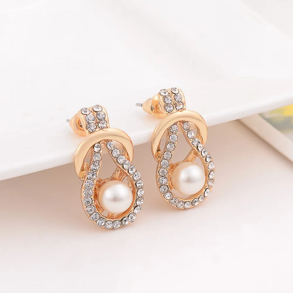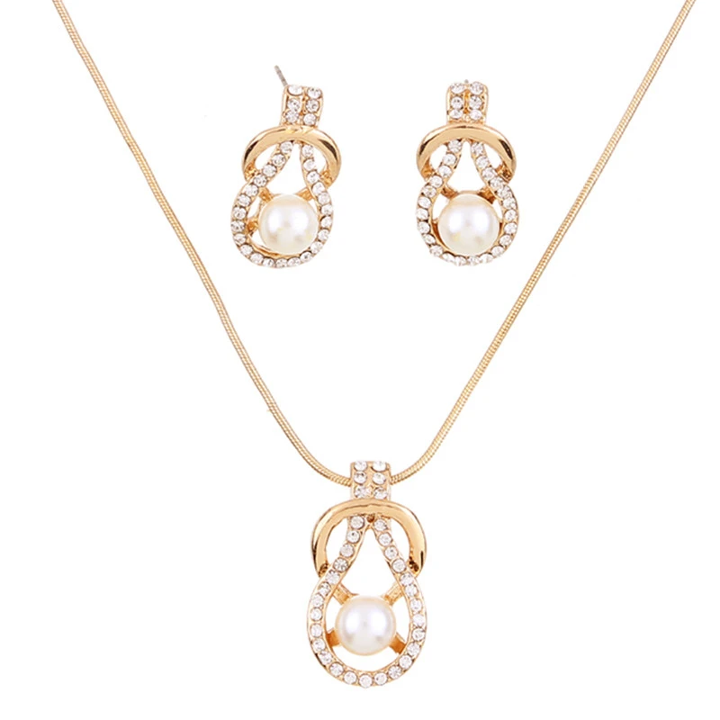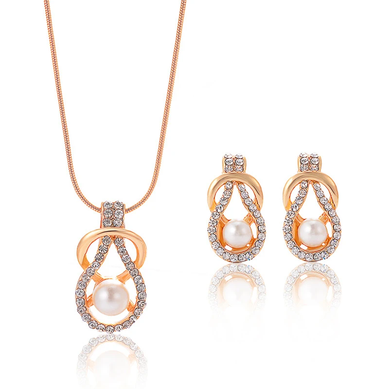 Модные модные Ювелирные наборы Позолоченные Имитация жемчуга кристалл ожерелье серьги невесты ювелирный набор Бесплатная доставка