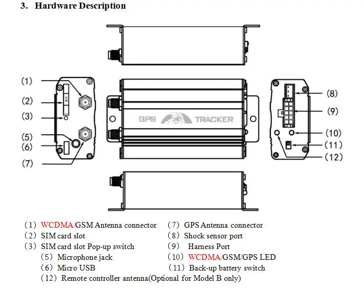 Этот трекер-новый продукт, основанный наWCDMA/GSM/GPRS сеть и GPS спутниковая система позиционирования, которая устанавливает несколько функций безопасности, позиционирования, наблюдения, аварийной сигнализации и отслеживания в полном объеме. Он может отслеживать и контролировать удаленную цель через SMS или Интернет.