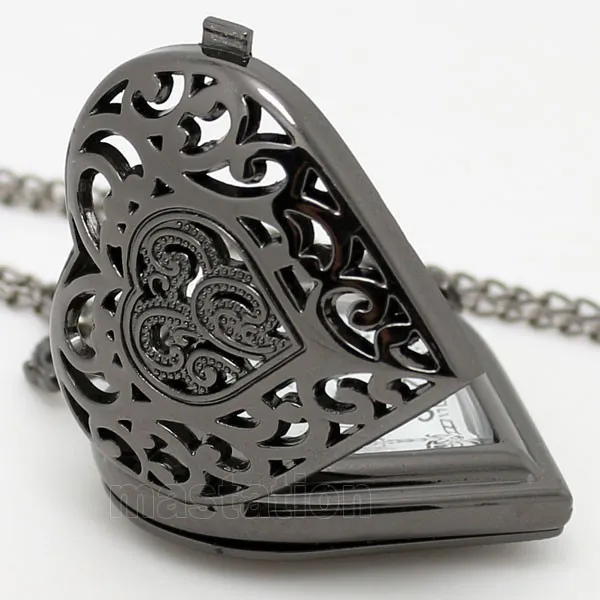 Модные открытые карманные часы P76 в винтажном стиле с сердечком и цепочкой