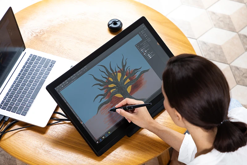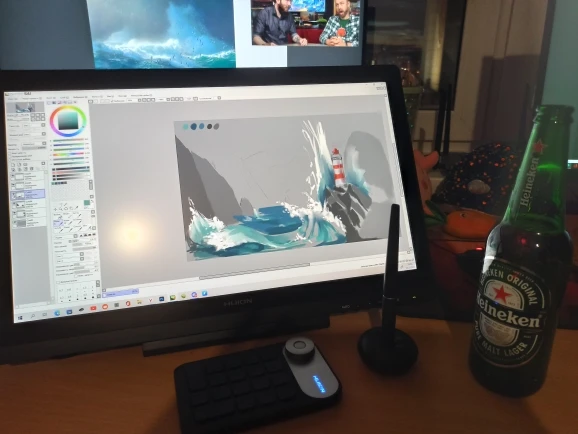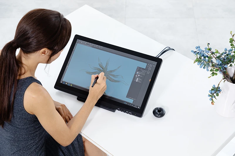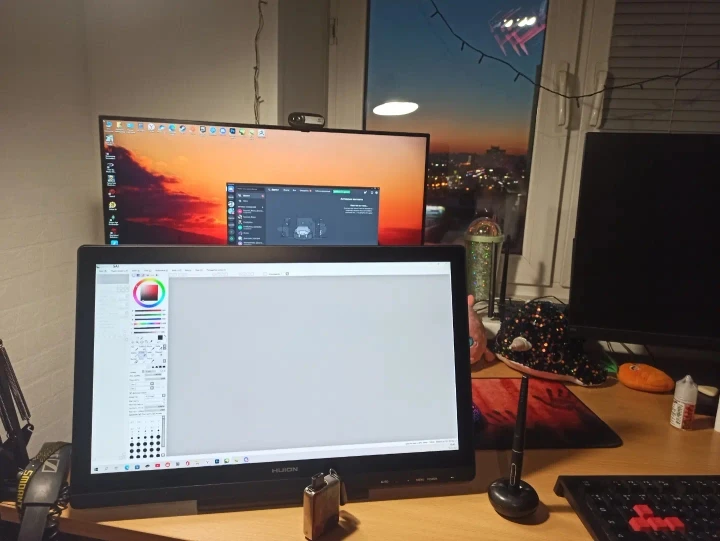 в целом неплохой планшет для бюджетного сегмента. на стыках пластика в паре мест есть небольшие сколы (всё таки бюджет), но их не видно, когда планшет стоит на столе и, возможно, повезло именно мне. разрешение Full HD, признаться, для такой диагонали маловато, работать всё таки нужно почти вплотную, в отличии от монитора компьютера и после монитора с фрисинк и разрешением в 2к глаза чувствуют разницу, плюс мыльновато, но, в целом, работать можно, глаза не болят, цветопередача корректная, приятная, мерцания так же выявлено не было к сожалению мониторы с разрешением в 2к и выше уже значительно дороже, так что жалоба нивелируется стоимостью единственный напрягающий нюанс - иногда пропадает курсор с тулом во время работы, но, скорее всего, дело в одновременной работе двух мониторов с разным разрешением и винде, пока непонятно, но, думаю, проблема решаема корректировкой параметров в целом довольна, за свои деньги (успела взять перед падением рубля и скидками за 26,5к)