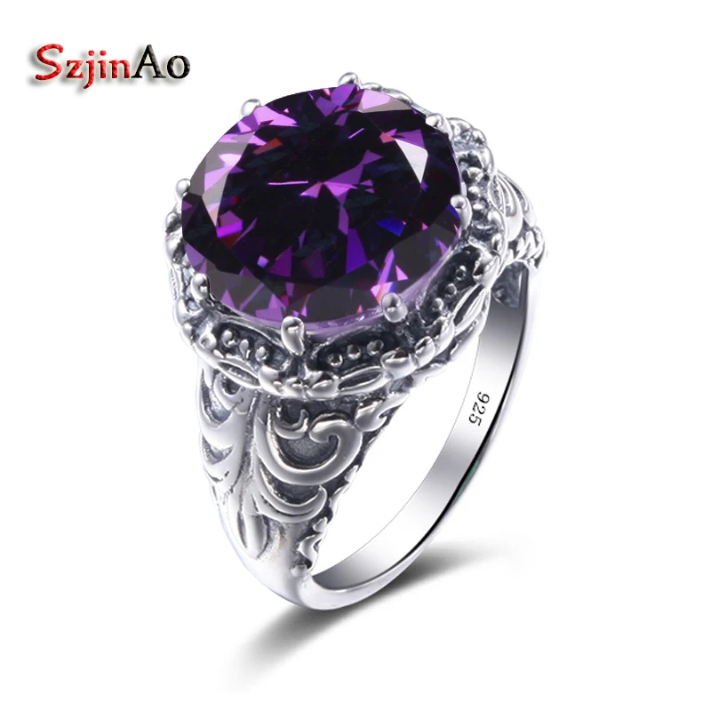 Szjinao Настоящее серебро 925 для женщин с аметистом кольцо Обручал...