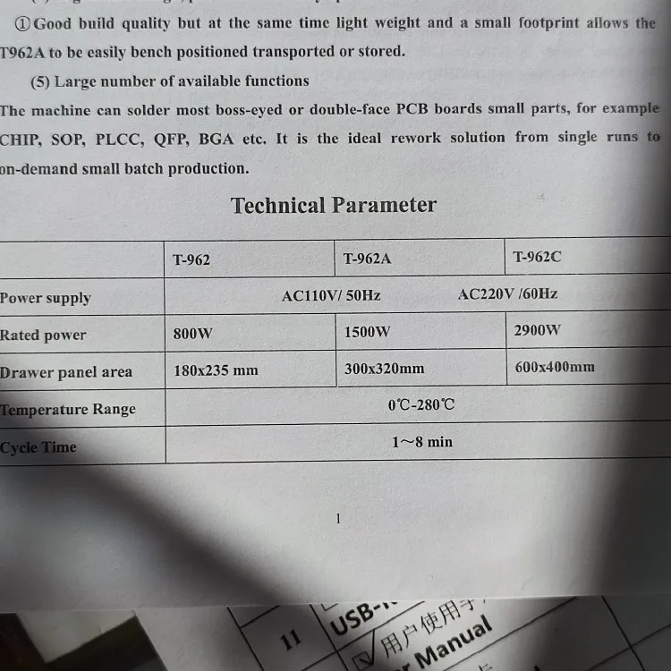 Оплавления, сушки, сохранение тепла, фрезеровки, быстрое охлаждение и другие функции в одном; Можете выполнить одиночных и двусторонняя печатная плата PCB Сварки чип, SOP, PLCC, QFP, BGA и т. д.; может использоваться в качестве клея для отверждения продукта. Тепловая плата, обслуживание печатной платы и другие работы. Широко используется в различных типах компаний, компаний, учреждений, научных исследований и разработок и небольшого серийного производства.