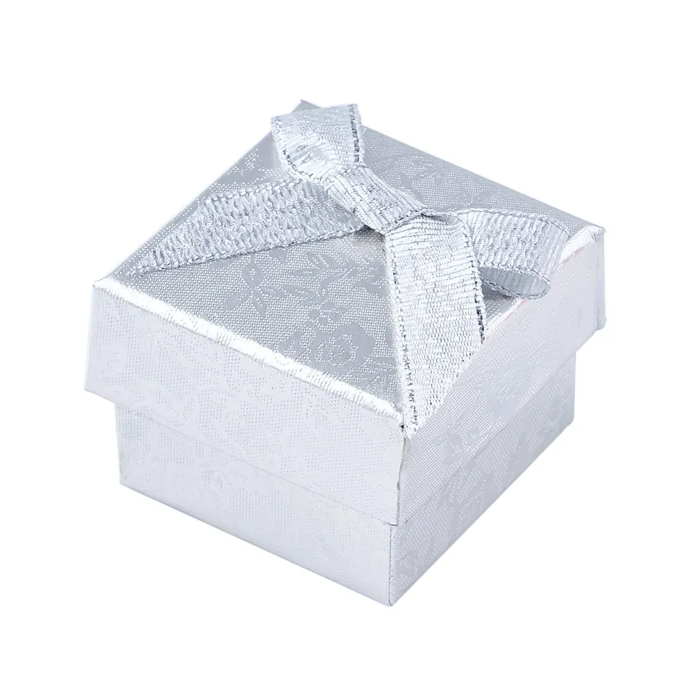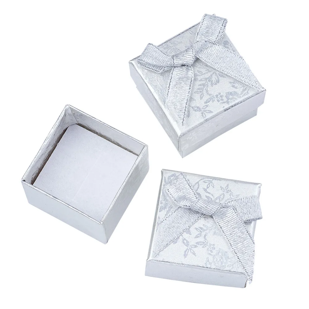 24 шт.лот 43x43x32 мм Серебряный квадратный бант картонные кольца коробки День святого Валентина подарки коробки для ювелирных изделий кольца дисплей