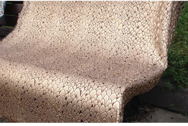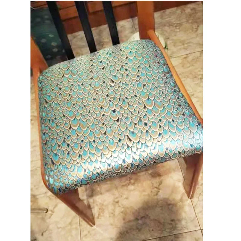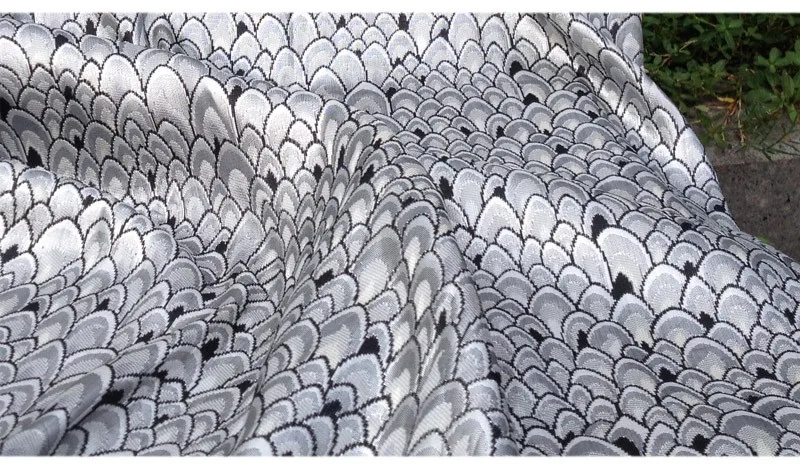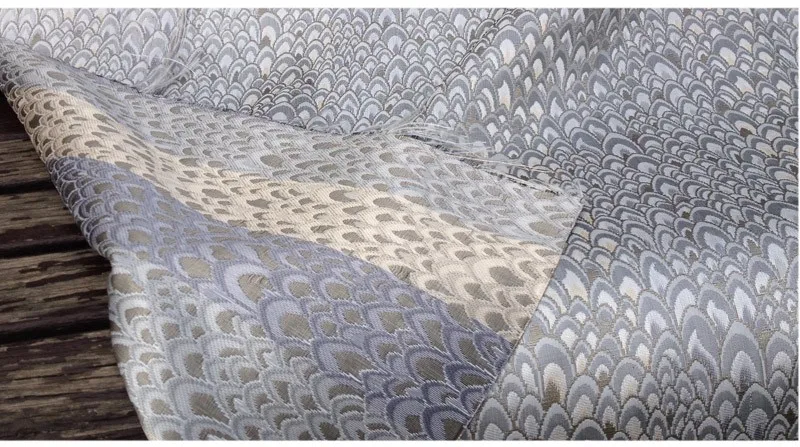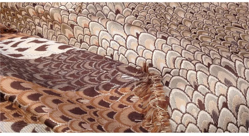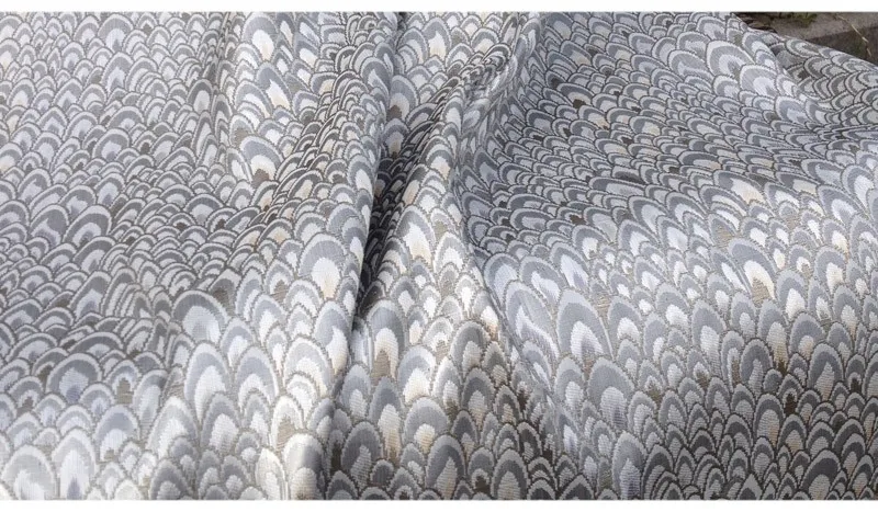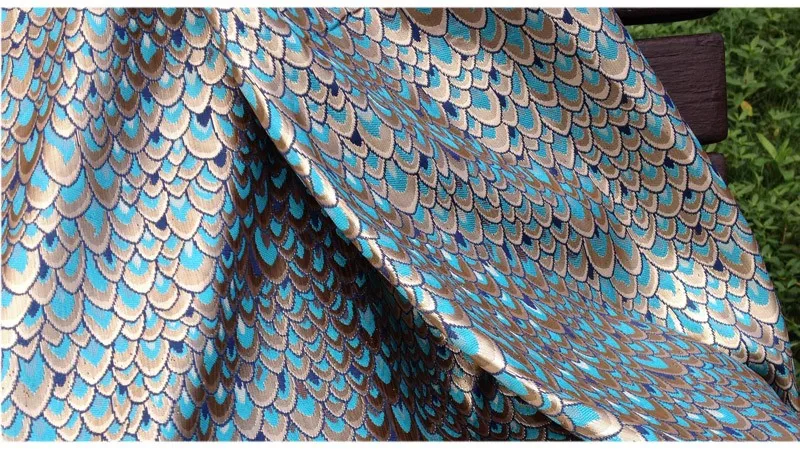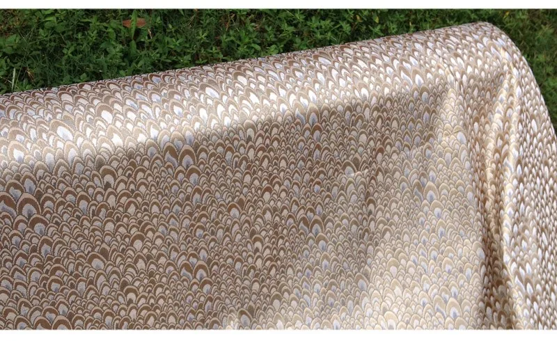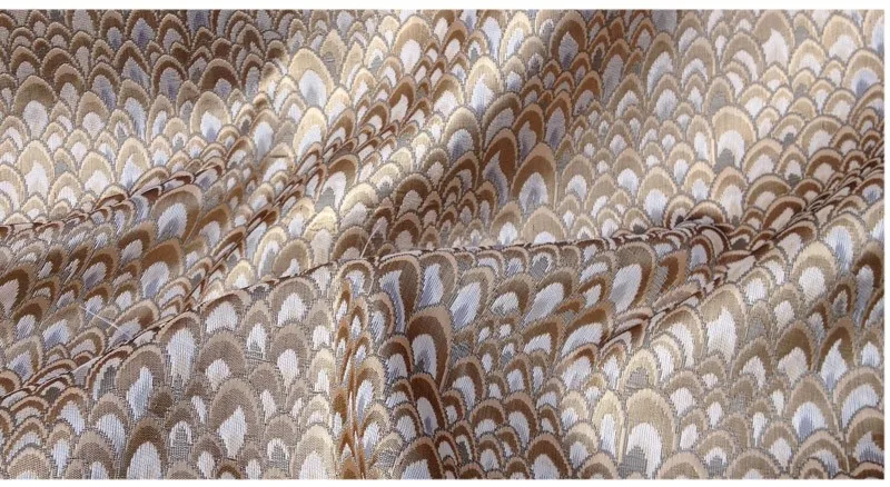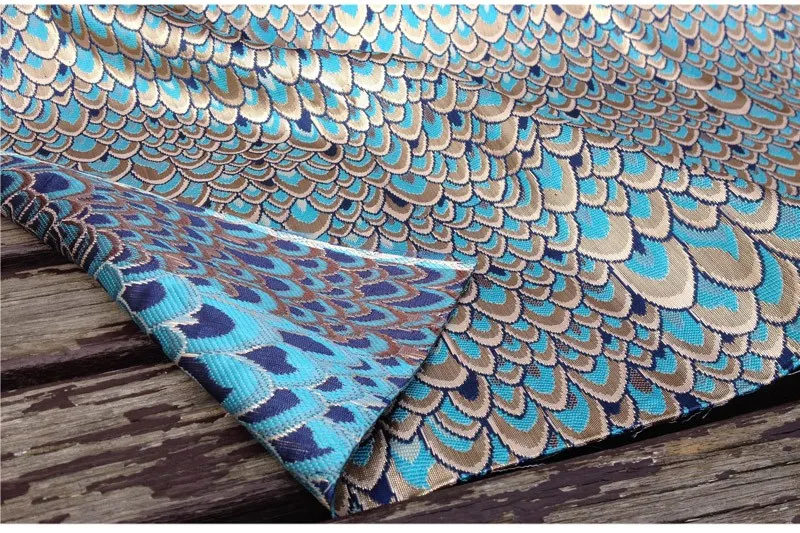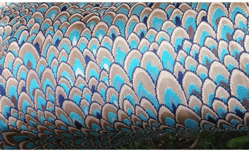 Жаккардовая ткань с павлиньим узором и металлическим отливом. Материал для пошива платьев, одежды, верхней одежды, курток, домашнего декора, мебельной обивки.