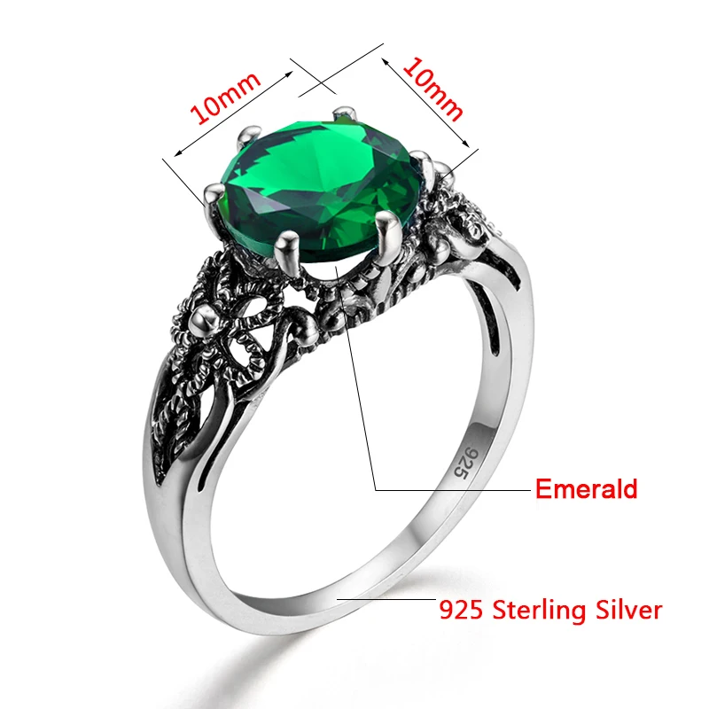 Szjinao Подвески ручной работы, искусственное серебряное ювелирное изделие, дизайнерское викторианское женское древнее серебряное кольцо с зеленым изумрудом
