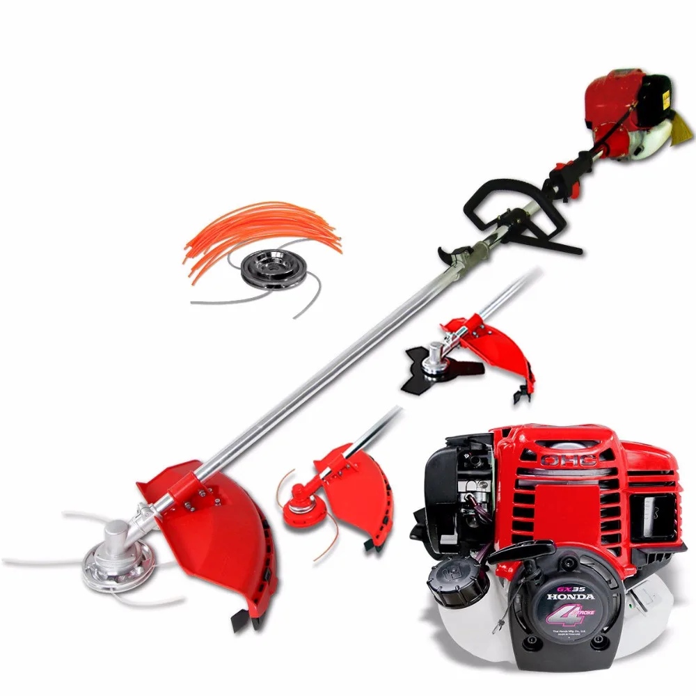 4 тактный кусторезЭто совершенно новый газовый 35cc 2 в 1 резак для кисточек и линейный триммер. Он включает в себя резец щетки металлическое лезвие 3 зуба и линии триммер катушка Замена