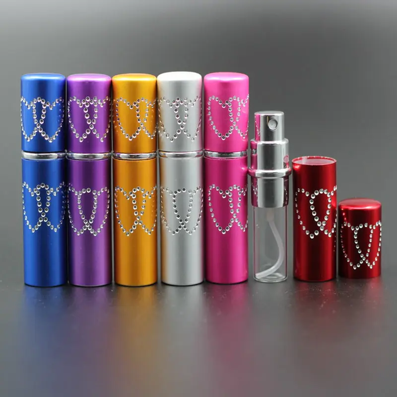 50 шт./лот оптовая продажа 5 мл Выгравированный дизайн многоразового использования анодированный алюминиевый флакон для духов с рисунком бабочки стеклянный флакон для духов