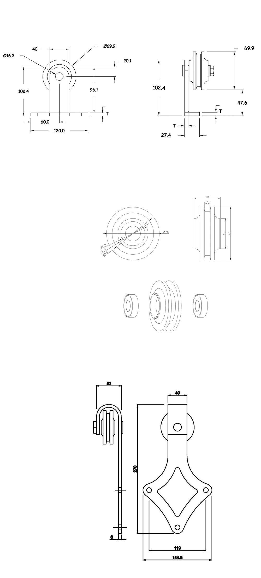 Только роликовые вешалки, без других фитингов, одна пара-2 шт. ролики. Для дверей толщиной 40-45 мм. Колеса сделаны помпоном, более гладкие и тихие.